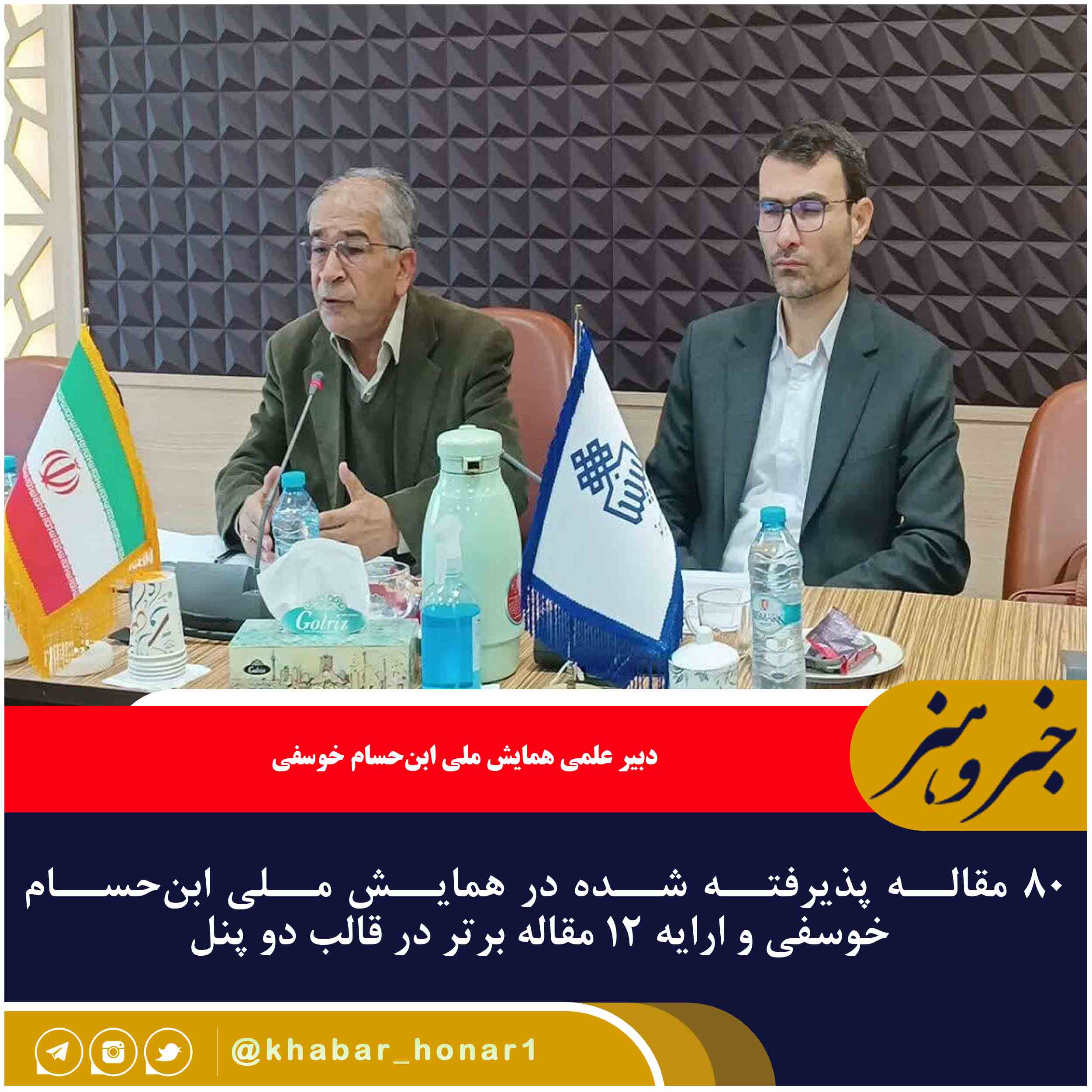 دبیر علمی همایش ملی ابنحسام خوسفی با بیان اینکه ۱۲ مقاله برتر در قالب دو پنل در همایش ارائه میشود، تصریح کرد: از مجموع آثار ارسالی به همایش تعداد ۴۰ مقاله پذیرفته نشده بود اما برای ما ارزشمند است و از نویسندگان تجلیل و قدردانی کنیم.