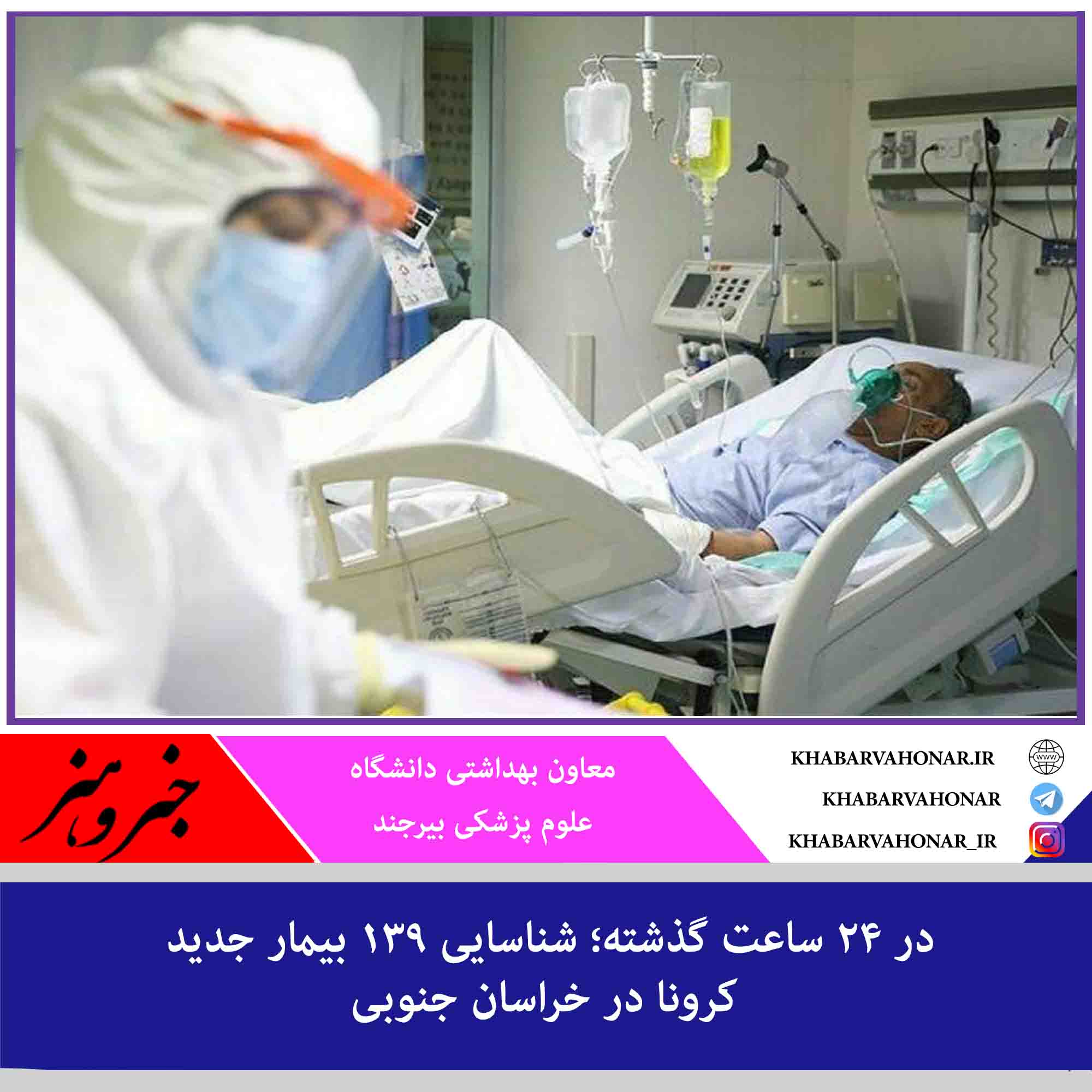 ?معاون بهداشتی دانشگاه علوم پزشکی بیرجند با بیان اینکه در شبانه روز گذشته ۳۳۹ آزمایش کرونا در استان انجام شد که ۱۳۹ آزمایش، مثبت قطعی اعلام شد، گفت: از این تعداد مبتلای جدید به کرونا، ۲۲ نفر در بیمارستانها بستری اند و ۱۱۷ نفر نیز نمونه گیری سرپایی شدند.