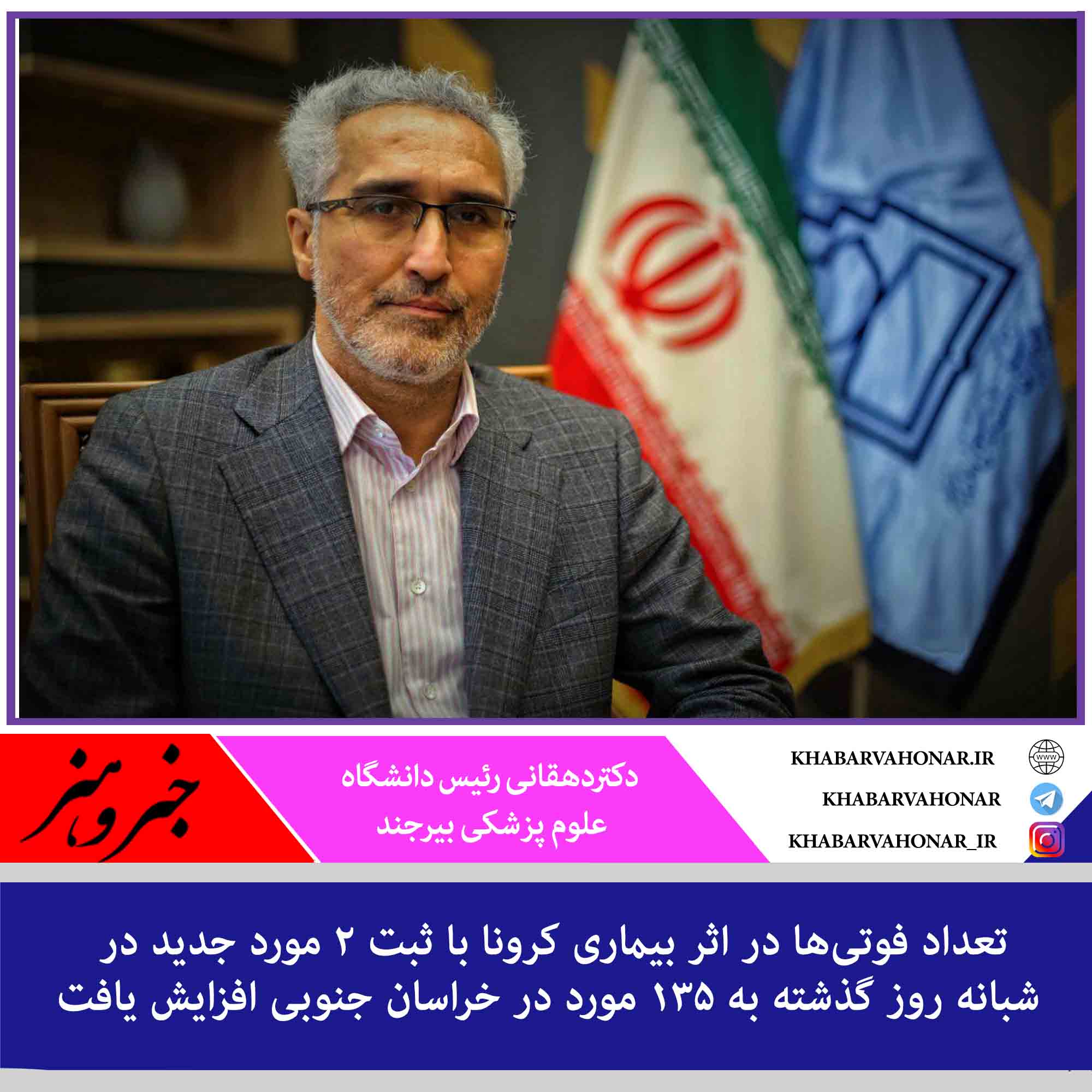 ?تعداد فوتیها در اثر بیماری کرونا با ثبت ۲ مورد جدید در شبانه روز گذشته به ۱۳۵ مورد در خراسان جنوبی افزایش یافت.