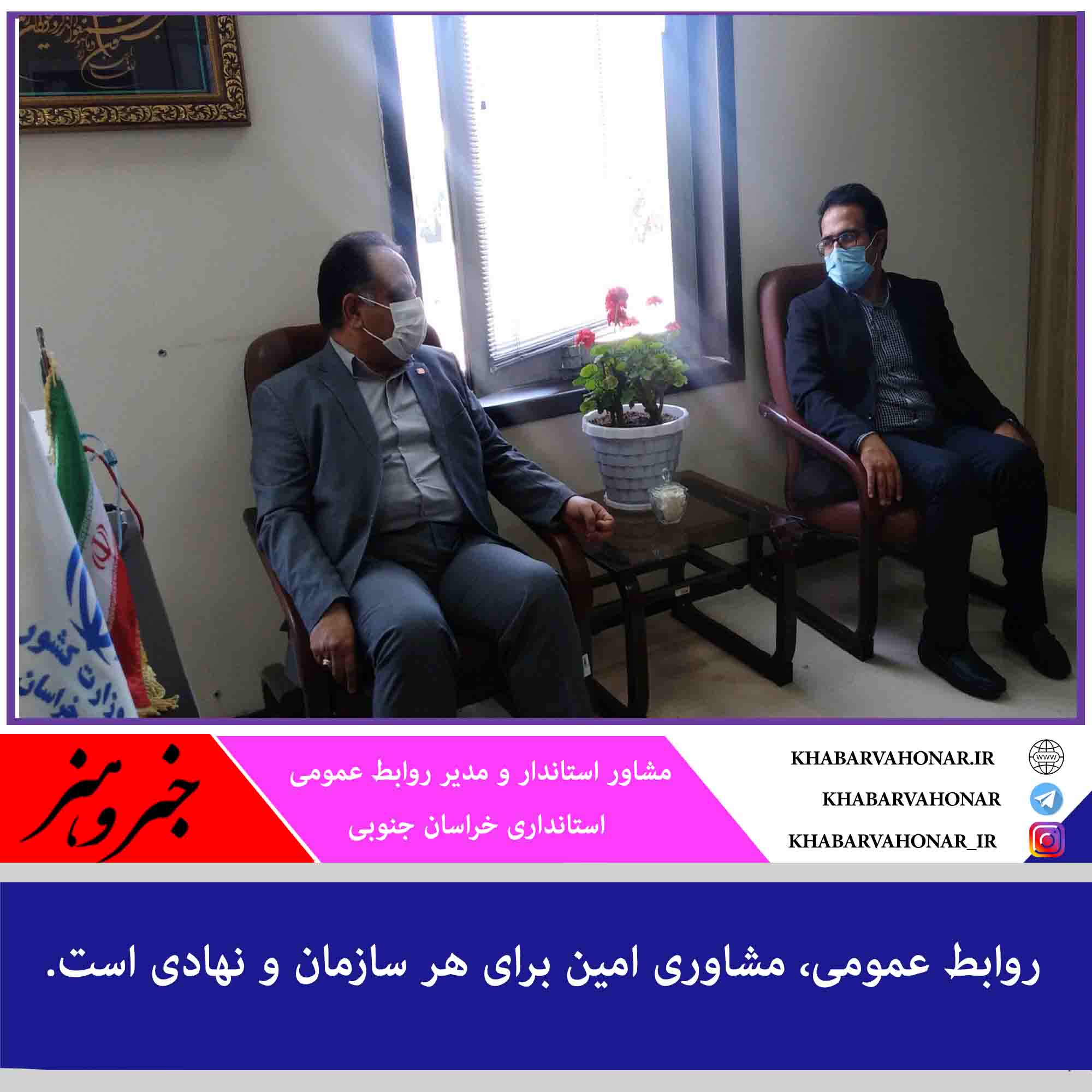 ?مشاور استاندار و مدیر روابط عمومی استانداری خراسان جنوبی گفت: روابط عمومی، مشاوری امین برای هر سازمان و نهادی است.