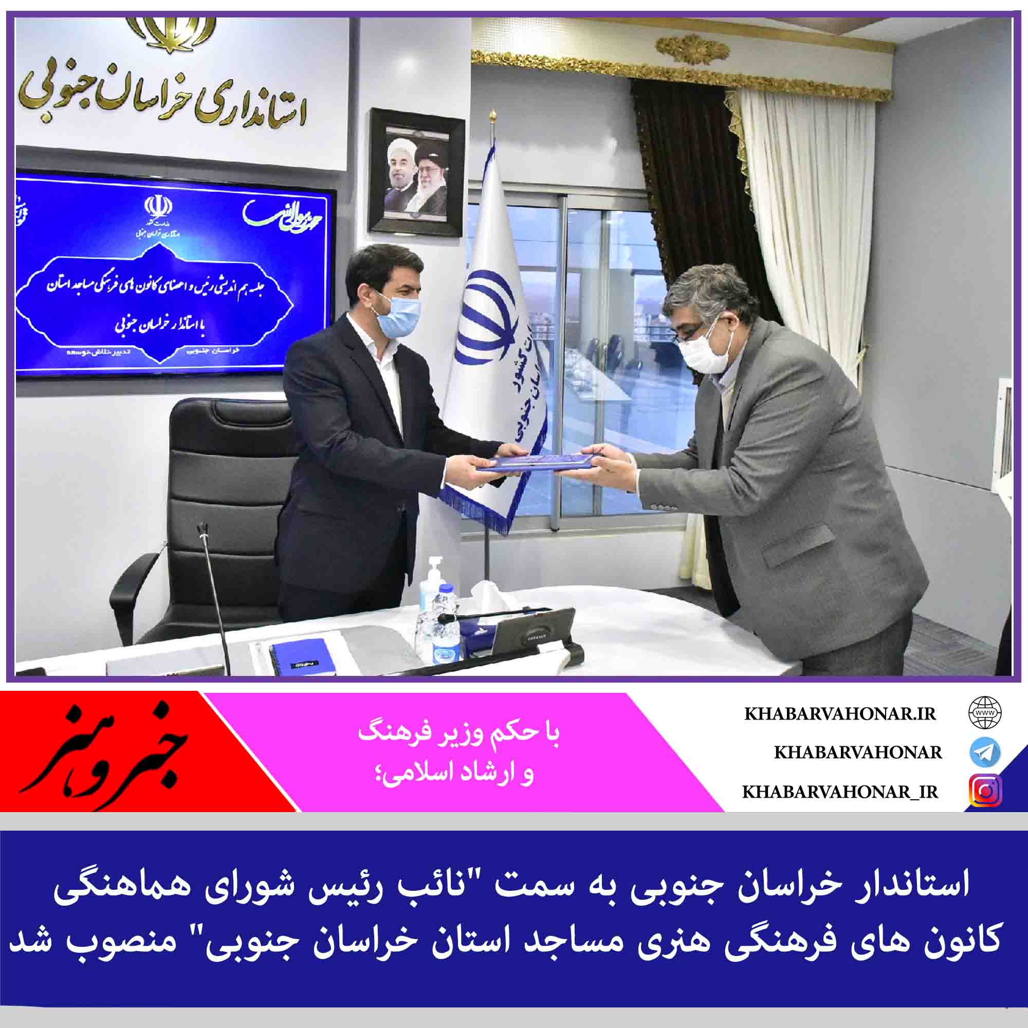 ?استاندار خراسان جنوبی به سمت “نائب رئیس شورای هماهنگی کانون های فرهنگی هنری مساجد استان خراسان جنوبی” منصوب شد