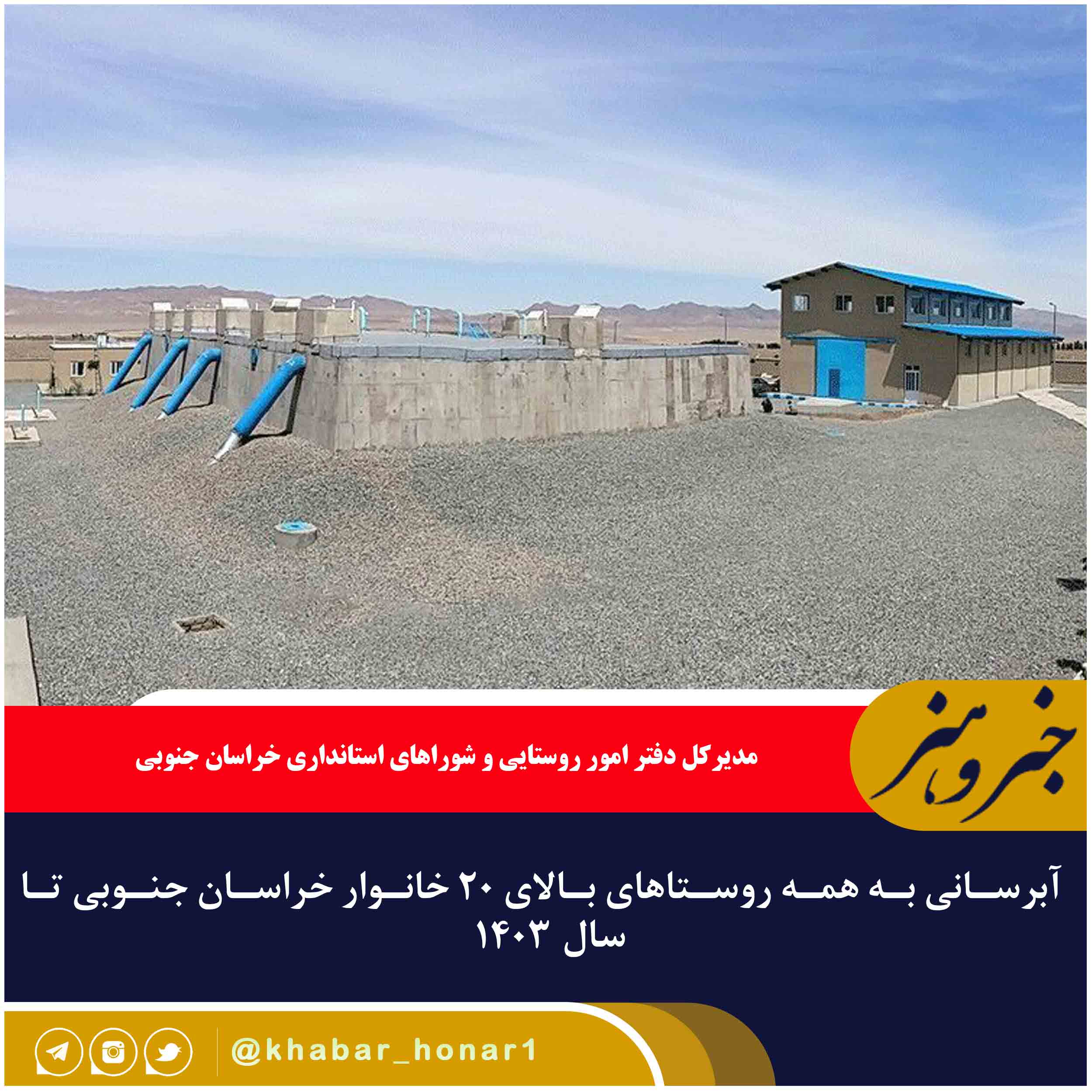 – مدیرکل دفتر امور روستایی و شوراهای استانداری خراسان جنوبی گفت: براساس تفاهمنامه همکاری با قرارگاه امام حسن مجتبی (ع)، تمامی روستاهای بالای ۲۰ خانوار استان تا سال ۱۴۰۳ از آب سالم و بهداشتی برخوردار خواهند شد.