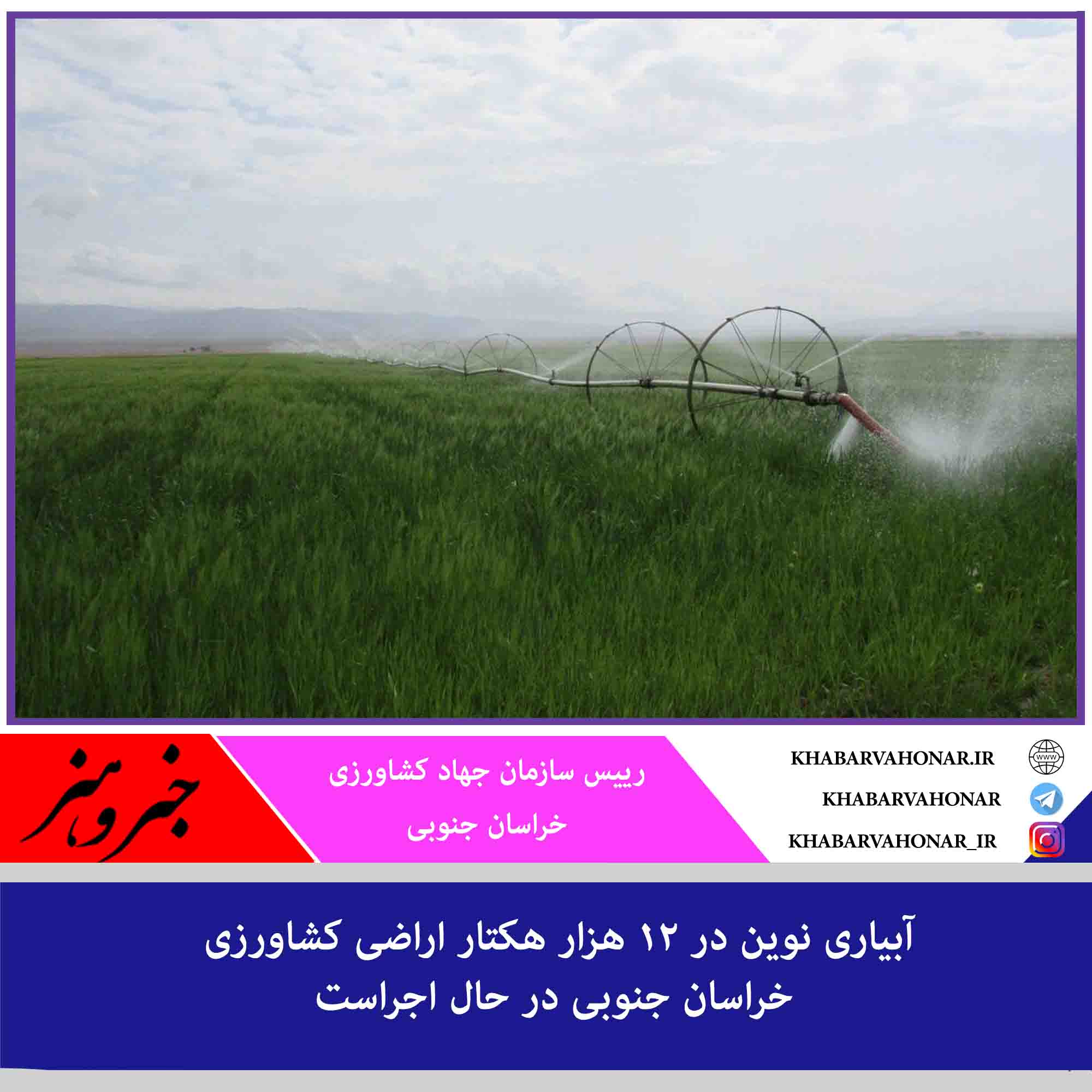 رییس سازمان جهاد کشاورزی خراسان جنوبی گفت: سامانه آبیاری نوین در سطح ۱۲ هزار هکتار از اراضی کشاورزی استان در حال اجراست و از ابتدای امسال نیز هزار و ۸۰۰ هکتار از اراضی کشاورزی به سامانههای نوین آبیاری مجهز شده است.