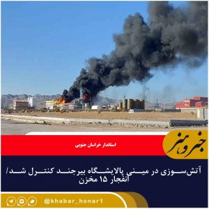 آتش سوزی در یکی از مخازن ۲۵۰ تُنی مینی پالایشگاه هیدروکربن منطقه ویژه اقتصادی بیرجند ساعت هشت و ۴۵ دقیقه امروز اعلام شد و بلافاصله عوامل امدادی وارد عمل شدند که تقریبا اطفای حریق پیشرفت داشت اما از حدود ساعت ۱۰ و ۴۰ دقیقه آتش به مخازن دیگر هم سرایت پیدا کرد.