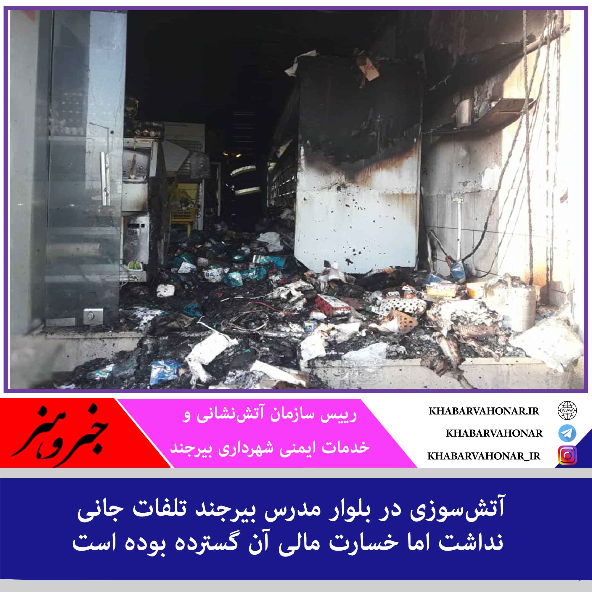 رییس سازمان آتشنشانی و خدمات ایمنی شهرداری بیرجند گفت: آتشسوزی در بلوار مدرس بیرجند تلفات جانی نداشت اما خسارت مالی آن گسترده بوده است.