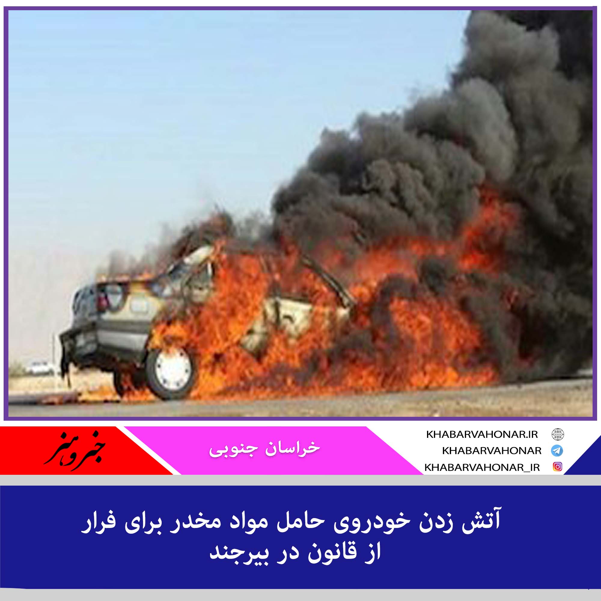 فرمانده انتظامی شهرستان بیرجند از دستگیری یک قاچاقچی مواد مخدر خبر داد که پس از ناکامی در فرار از دست ماموران، خودرو خود را به آتش کشید.