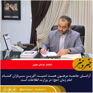 استاندار خراسان جنوبی گفت: آرامش جامعه مرهون همتِ امنیت آفرین سربازان گمنام امام زمان (عج) در وزارت اطلاعات است.