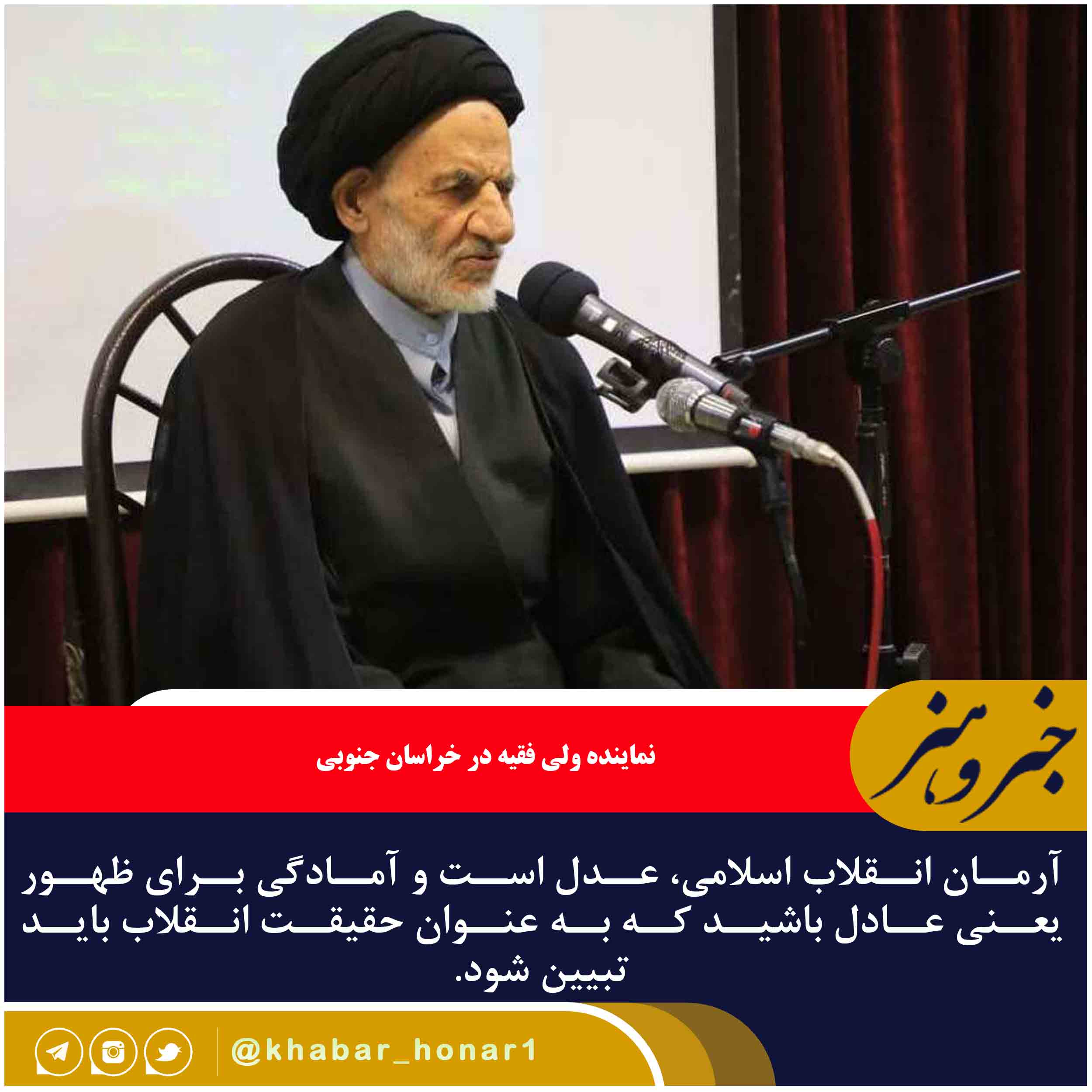 نماینده ولی فقیه در خراسان جنوبی و امام جمعه بیرجند گفت: آرمان انقلاب اسلامی، عدل است و آمادگی برای ظهور یعنی عادل باشید که به عنوان حقیقت انقلاب باید تبیین شود.
