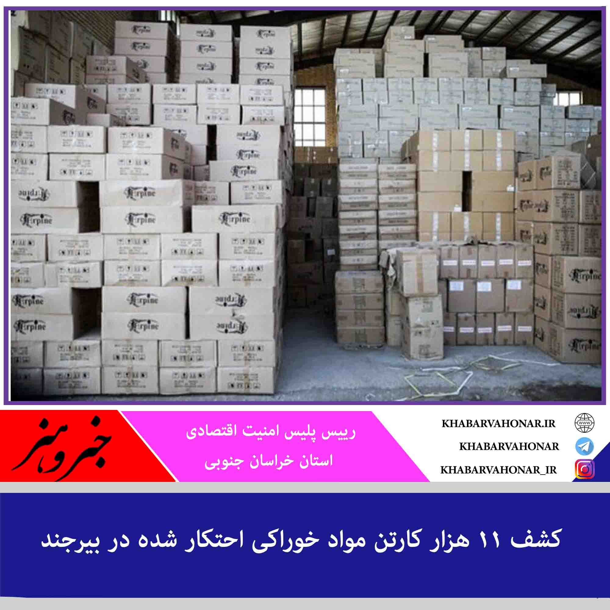 رییس پلیس امنیت اقتصادی استان خراسان جنوبی گفت: ماموران پلیس، ۱۱ هزار کارتن انواع مواد خوراکی احتکار شده را به ارزش ۶ میلیارد و ۶۳۰ میلیون ریال در شهرستان بیرجند کشف کردند.