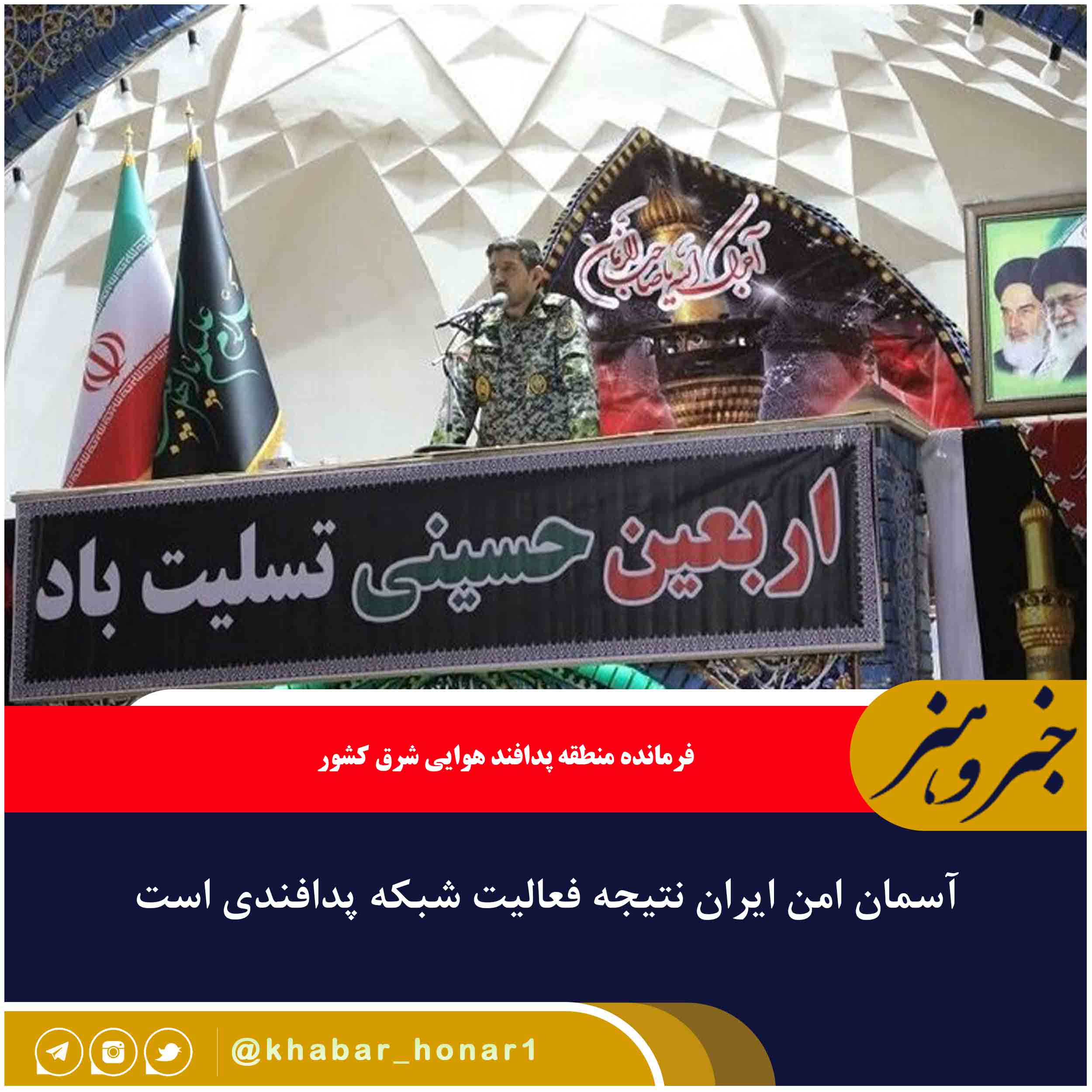 فرمانده منطقه پدافند هوایی شرق کشور با اشاره به استقرار سامانههای پدافند هوایی در نقاط مختلف کشور و اینکه شبانهروز در حال رصد آسمان و برقراری امنیت هستند، گفت: آسمان امن ایران نتیجه فعالیت شبکه پدافندی است.