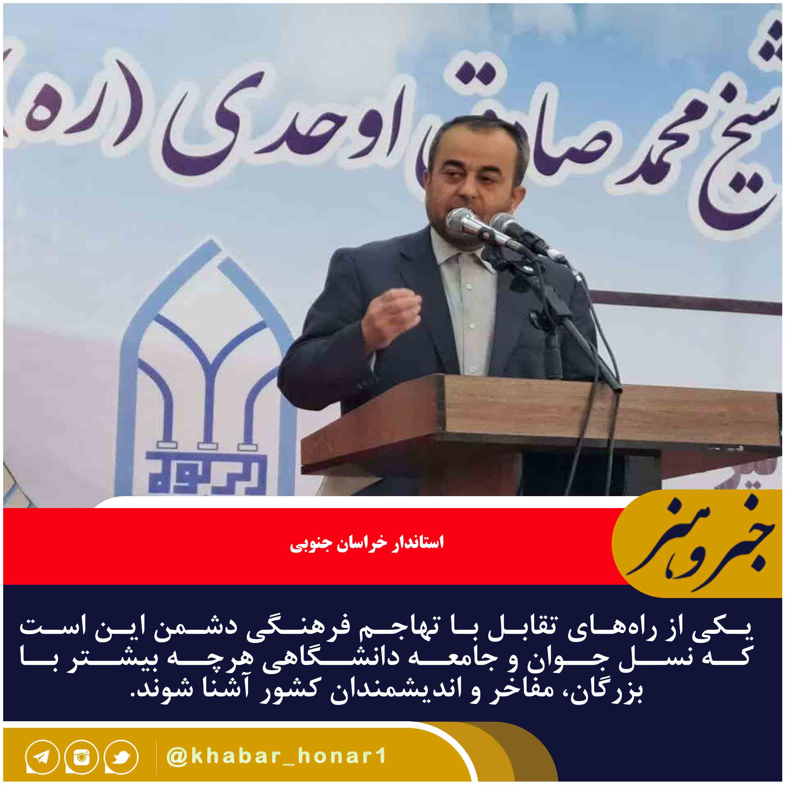 استاندار خراسان جنوبی گفت: یکی از راههای تقابل با تهاجم فرهنگی دشمن این است که نسل جوان و جامعه دانشگاهی هرچه بیشتر با بزرگان، مفاخر و اندیشمندان کشور آشنا شوند.
