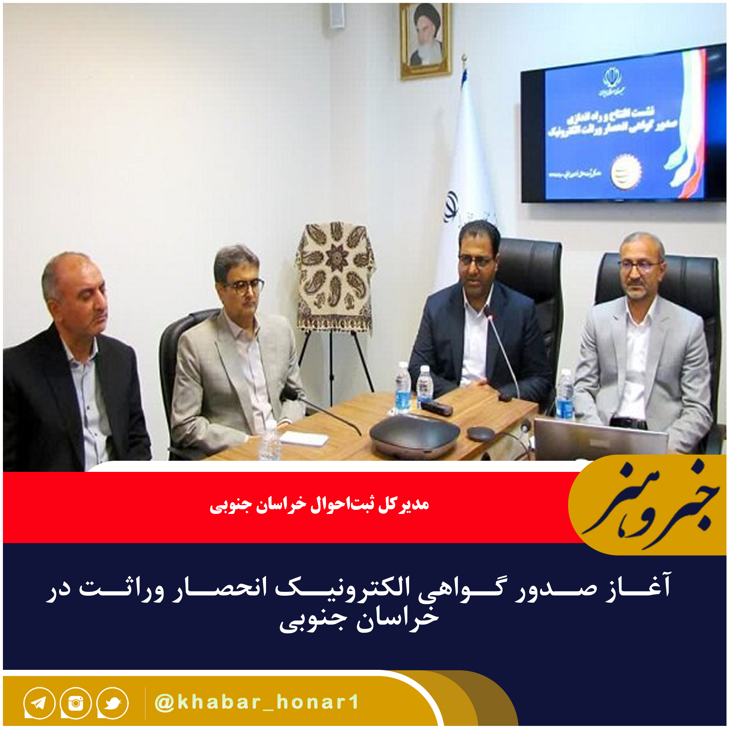 مدیرکل ثبتاحوال خراسان جنوبی از آغاز صدور گواهی الکترونیک انحصار وراثت در این استان خبر داد.