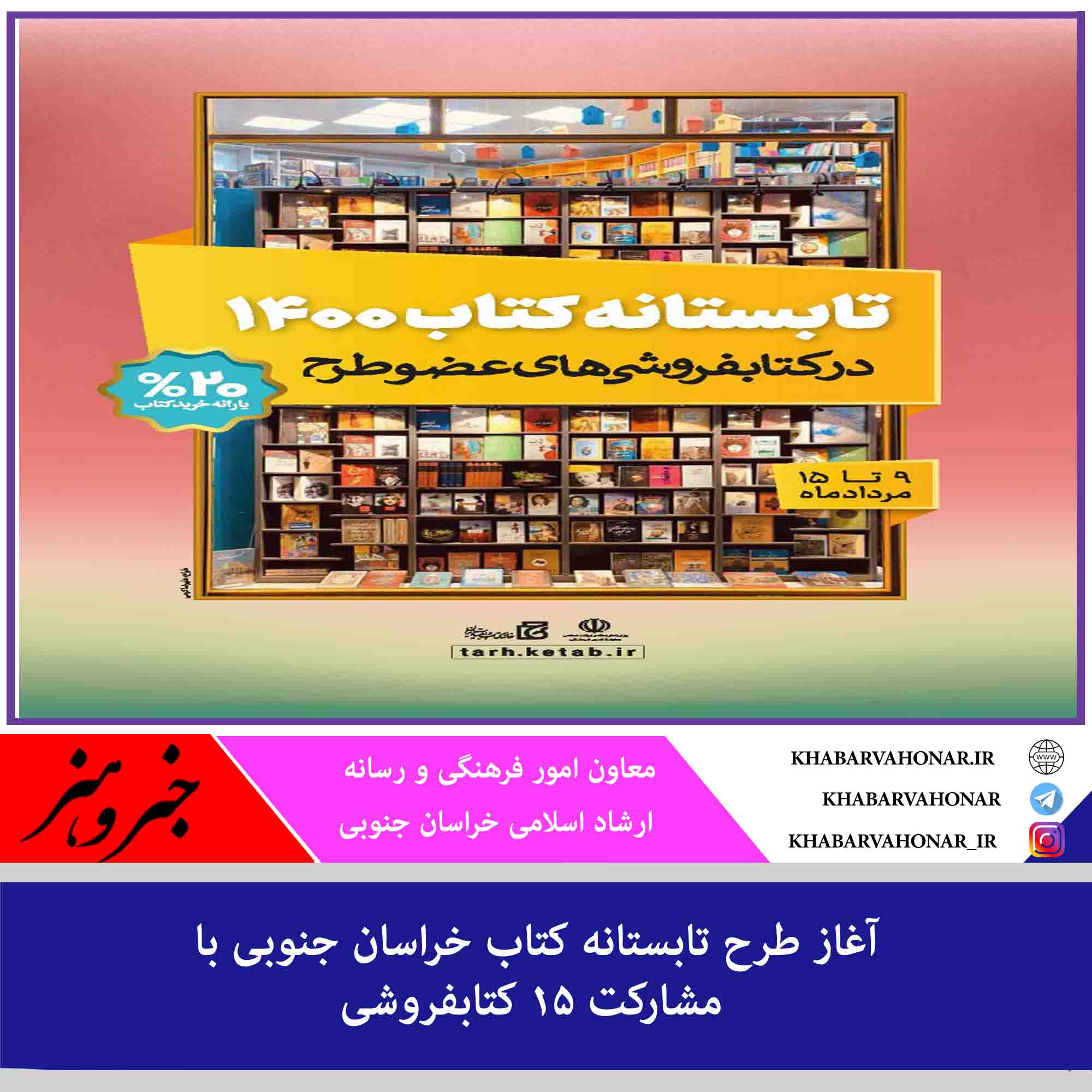 معاون امور فرهنگی و رسانه اداره کل فرهنگ و ارشاد اسلامی خراسان جنوبی از آغاز طرح تابستانه کتاب ۱۴۰۰ خراسان جنوبی و مشارکت ۱۵ کتابفروشی استان در این طرح خبر داد.محمود رمضانی با بیان این خبر، عنوان کرد: طرح تابستانه کتاب ۱۴۰۰ با هدف رونق بخشیدن به بازار کتاب و ترویج کتابخوانی، از ۹ مرداد ماه در سراسر کشور آغاز و تا ۱۵ مرداد ماه ادامه خواهد داشت.
