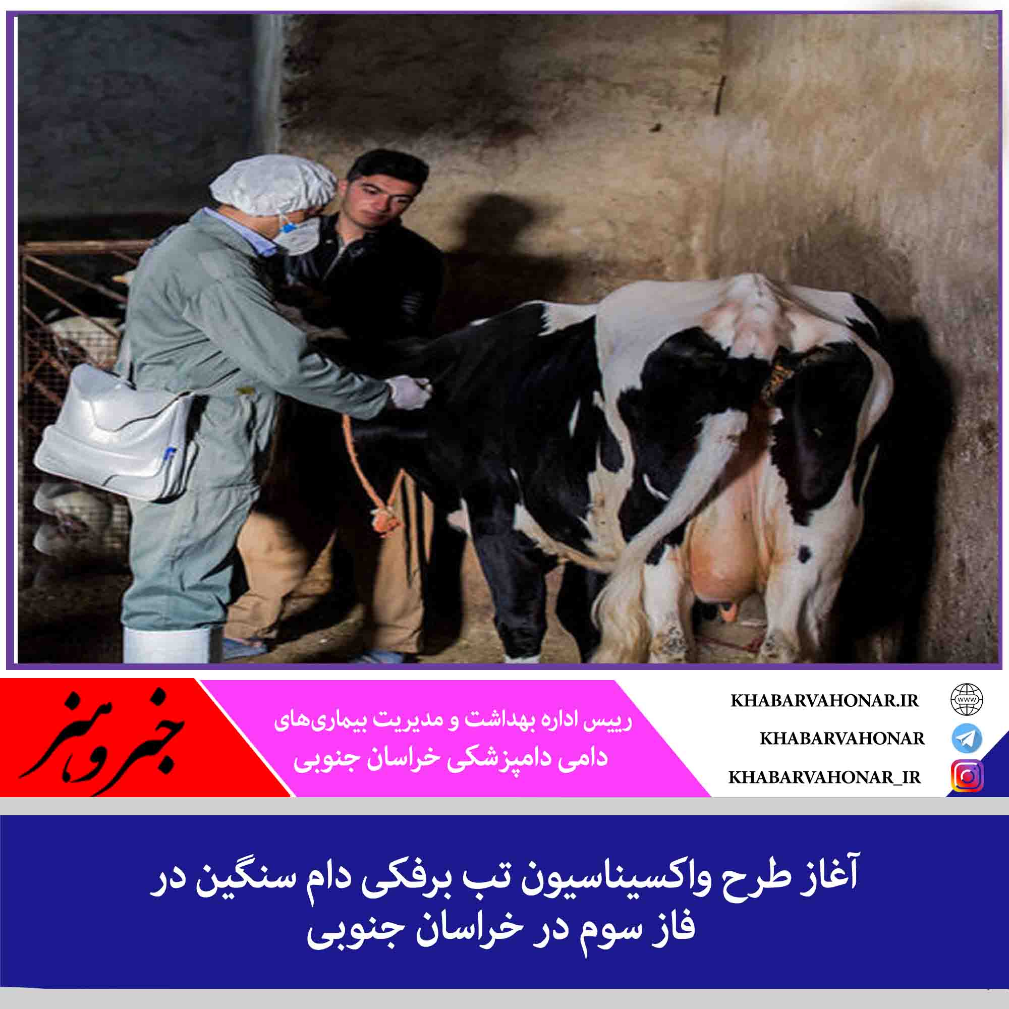 رییس اداره بهداشت و مدیریت بیماریهای دامی اداره کل دامپزشکی خراسان جنوبی از شروع فاز سوم اجرایی واکسیناسیون تب برفکی در دام سنگین از تاریخ ۲۰ دی ماه به مدت ۳۰ روز کاری خبر داد.