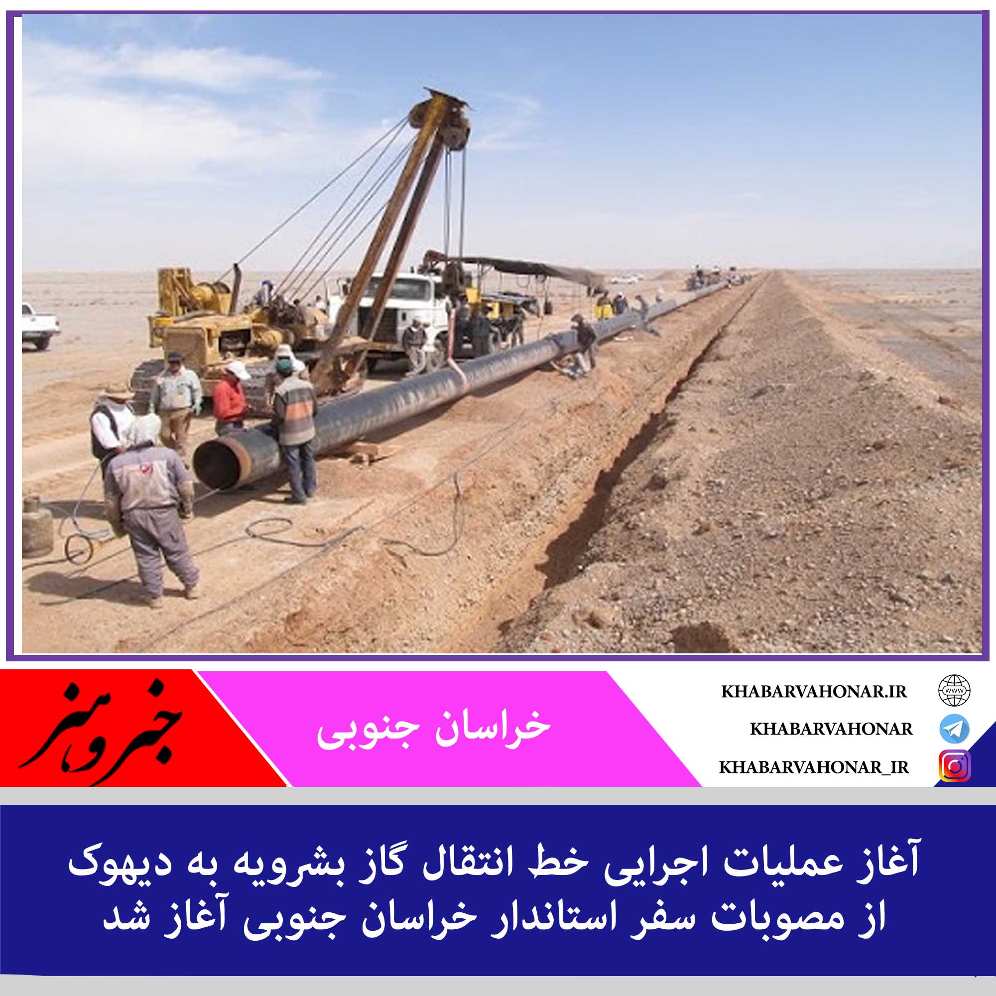 ?عملیات اجرایی خط انتقال گاز بشرویه به دیهوک به طول ۷۰ کیلومتر و با اعتبار ۵۲ میلیارد تومان از محل منابع داخلی شرکت ملی گاز ایران از مصوبات سفر استاندار خراسان جنوبی آغاز شد.