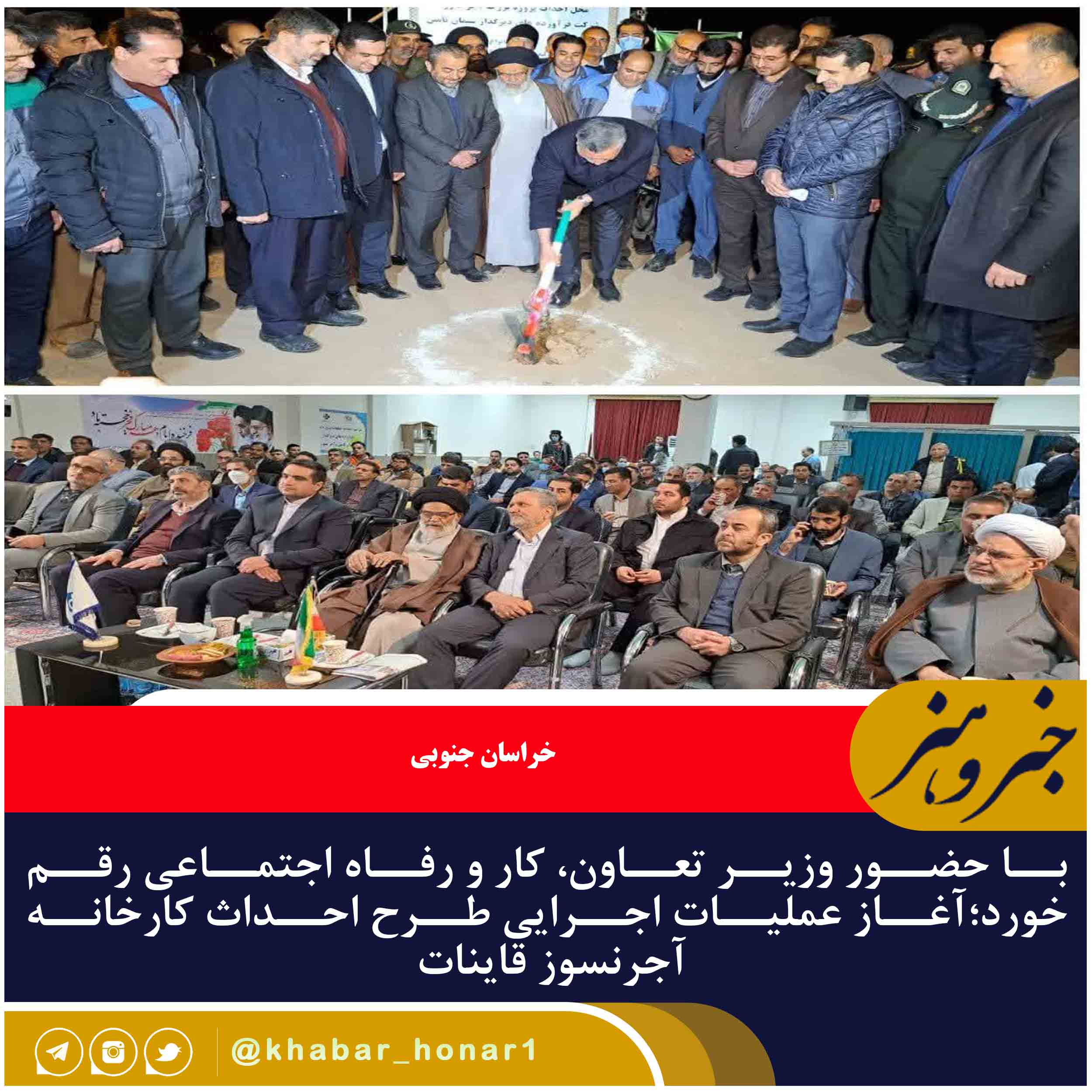 ?عملیات اجرایی طرح بزرگ احداث کارخانه آجر نسوز با سرمایه گذاری شرکت شستا شامگاه در کارخانه سیمان قاینات با حضور وزیر تعاون، کار و رفاه اجتماعی آغاز شد.