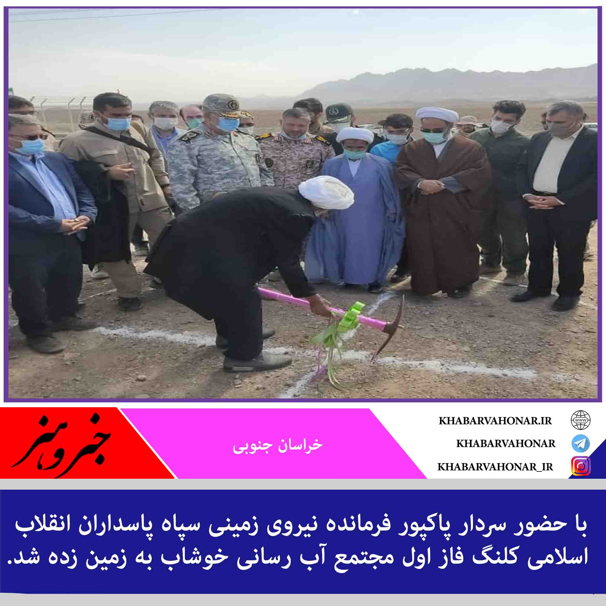 با حضور سردار پاکپور فرمانده نیروی زمینی سپاه پاسداران انقلاب اسلامی کلنگ فاز اول مجتمع آب رسانی خوشاب به زمین زده شد.