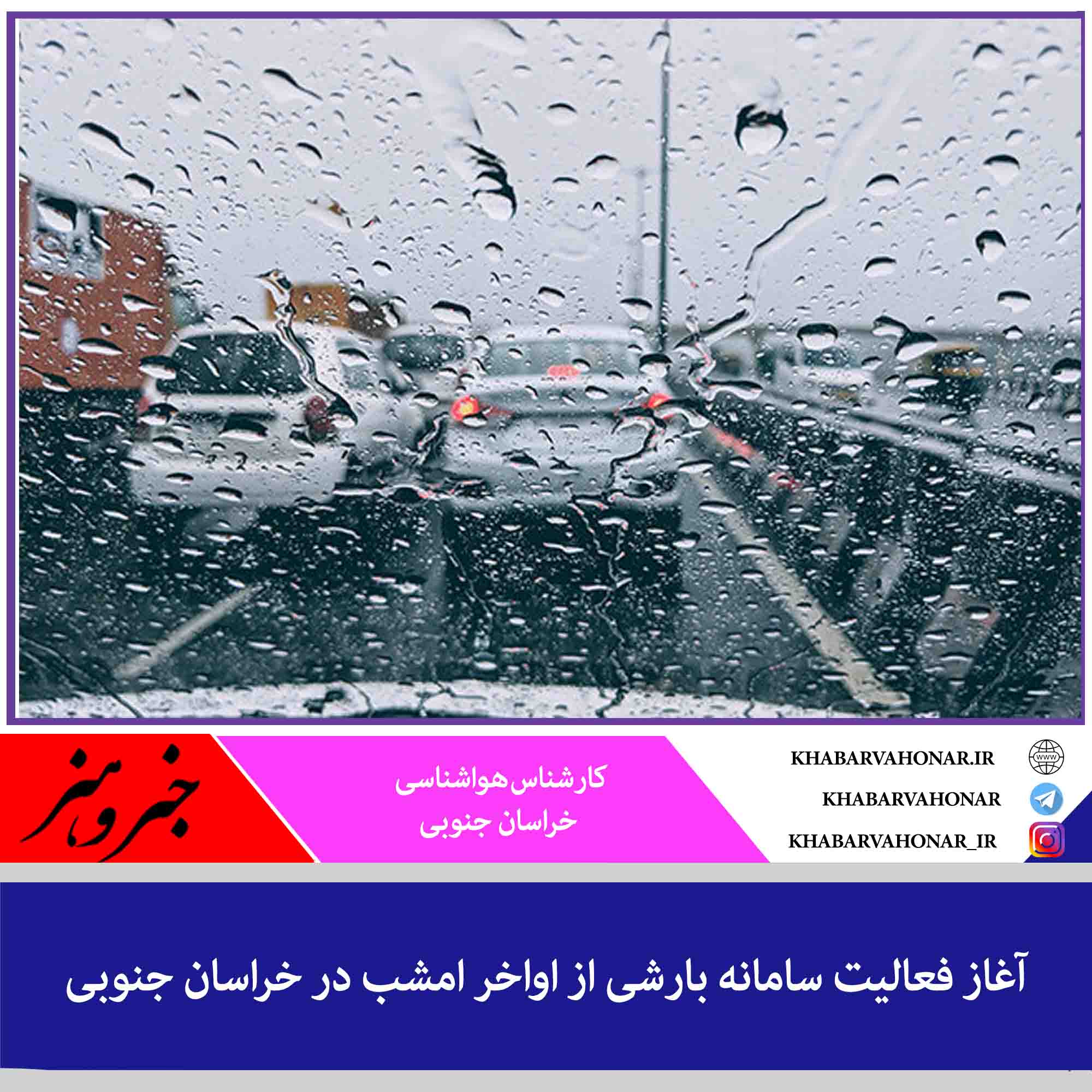 بارش باران از اواخر وقت امشب تا اوایل هفته آینده در خراسان جنوبی قابل پیش بینی است.