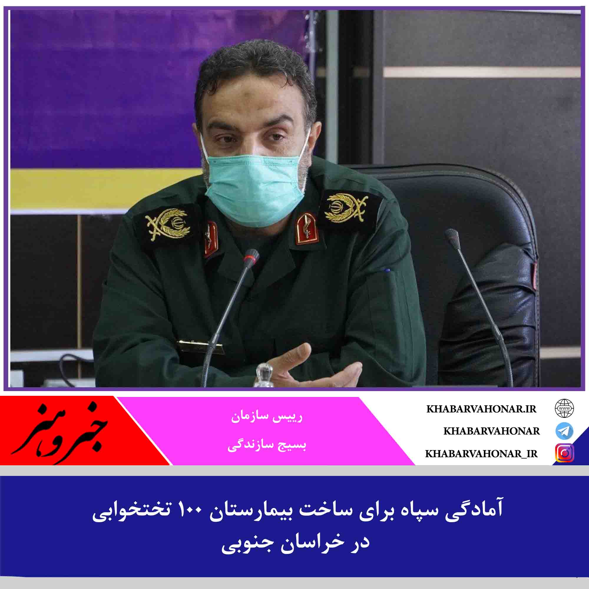 رییس سازمان بسیج سازندگی گفت: سپاه پاسداران برای ساخت بیمارستان ۱۰۰ تختخوابی در خراسان جنوبی اعلام آمادگی کرده که نیاز است برای این منظور زمینی به مساحت ۱۱ هکتار را تامین کند.