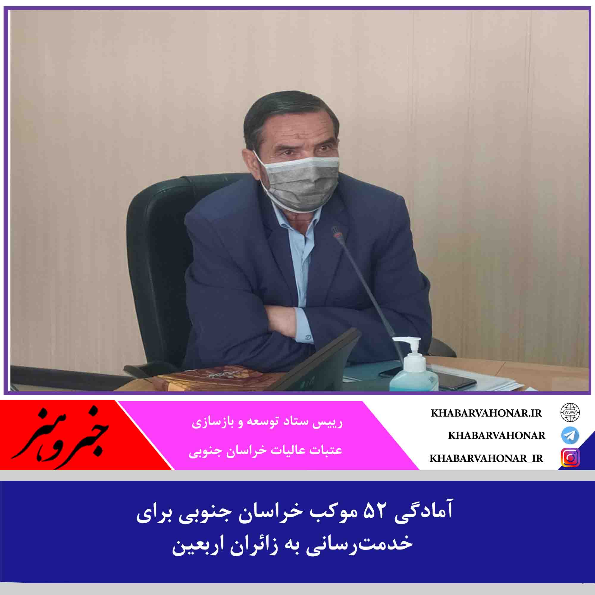 در نشست ستاد اربعین خراسان جنوبی که به ریاست استاندار برگزار شد افزود: از ۵۲ موکب مجوزدار هشت موکب در داخل استان به زائران خارجی بویژه پاکستانیها ارایه خدمت خواهند کرد.