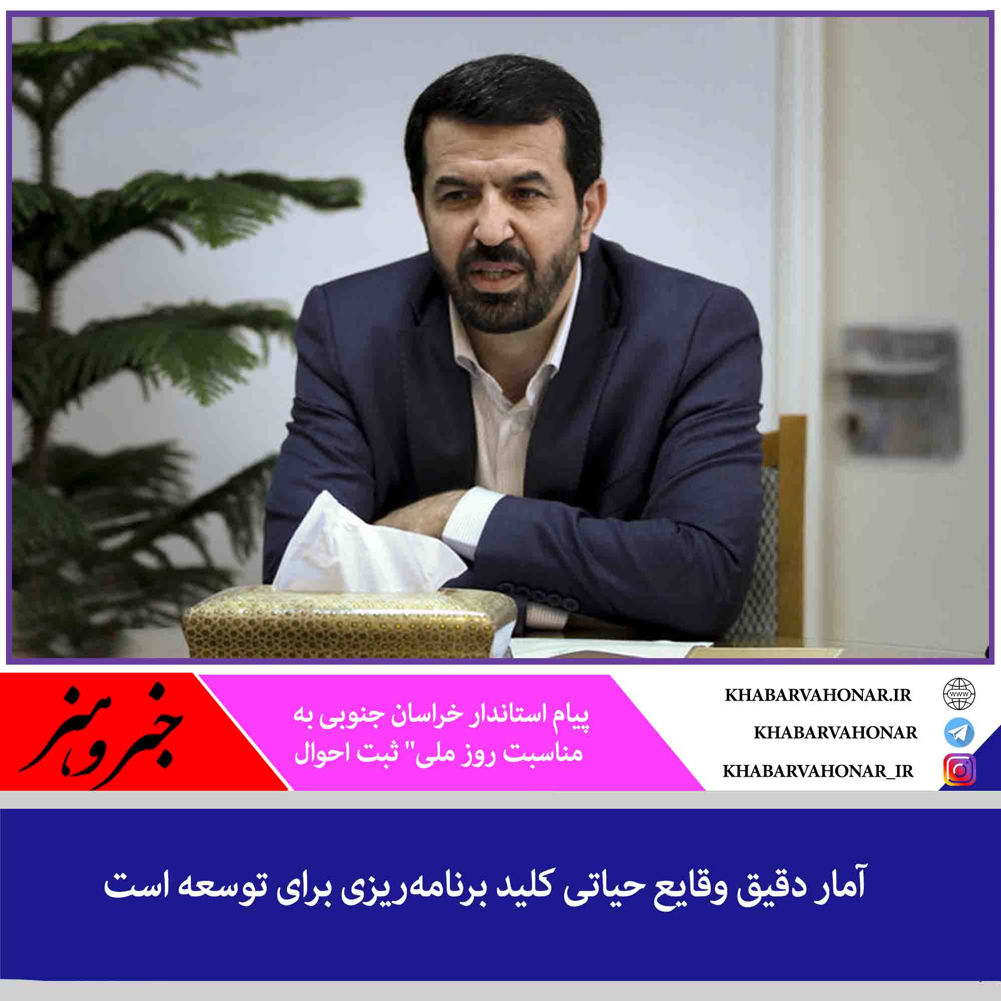 استاندار خراسان جنوبی گفت: آمار و اطلاعات دقیق وقایع حیاتی، کلید برنامهریزی برای توسعه، مهار چالشها و مشکلات، تخصیص عادلانه منابع و امکانات است.