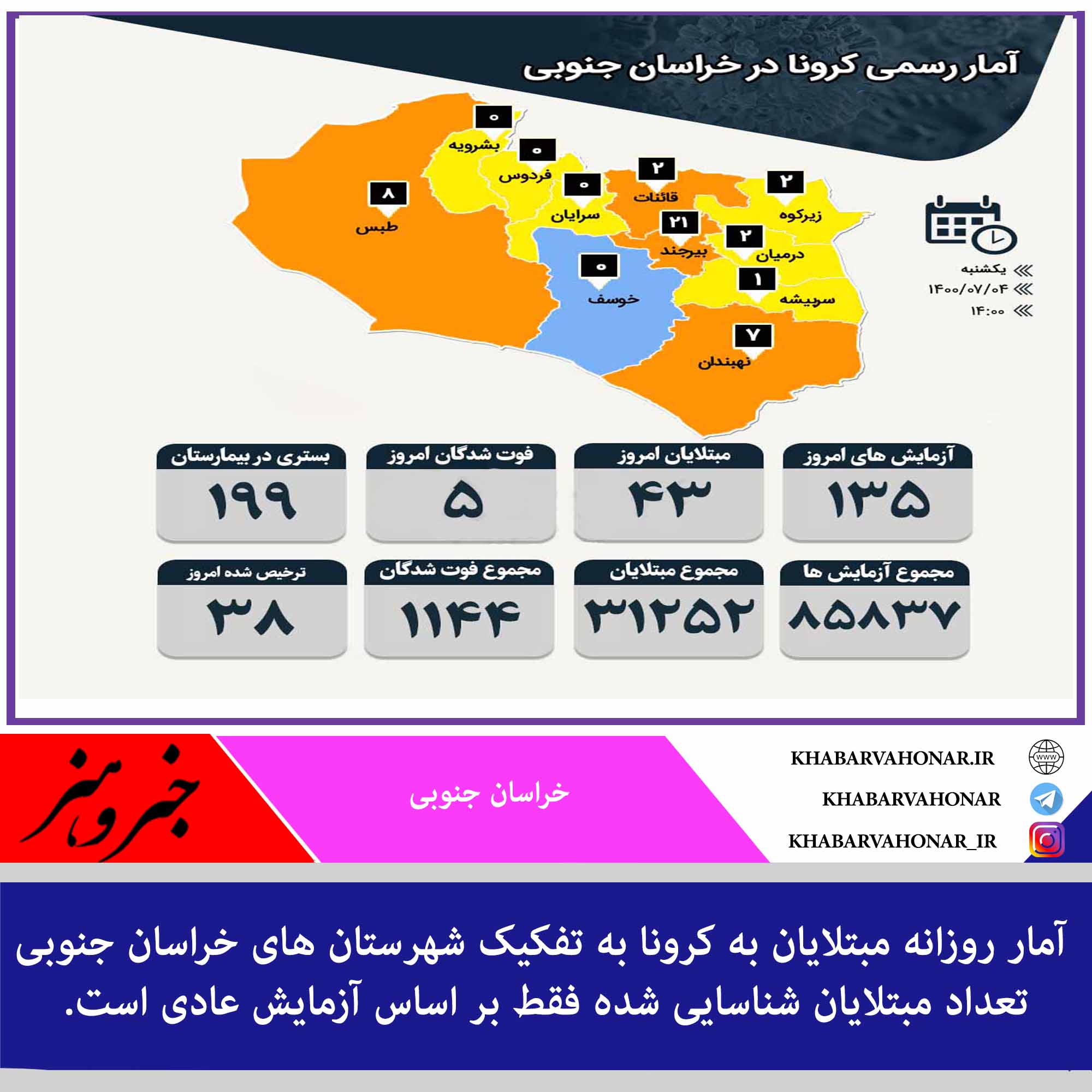 #آمار_روزانه مبتلایان به #کرونا به تفکیک شهرستان های #خراسان_جنوبی
