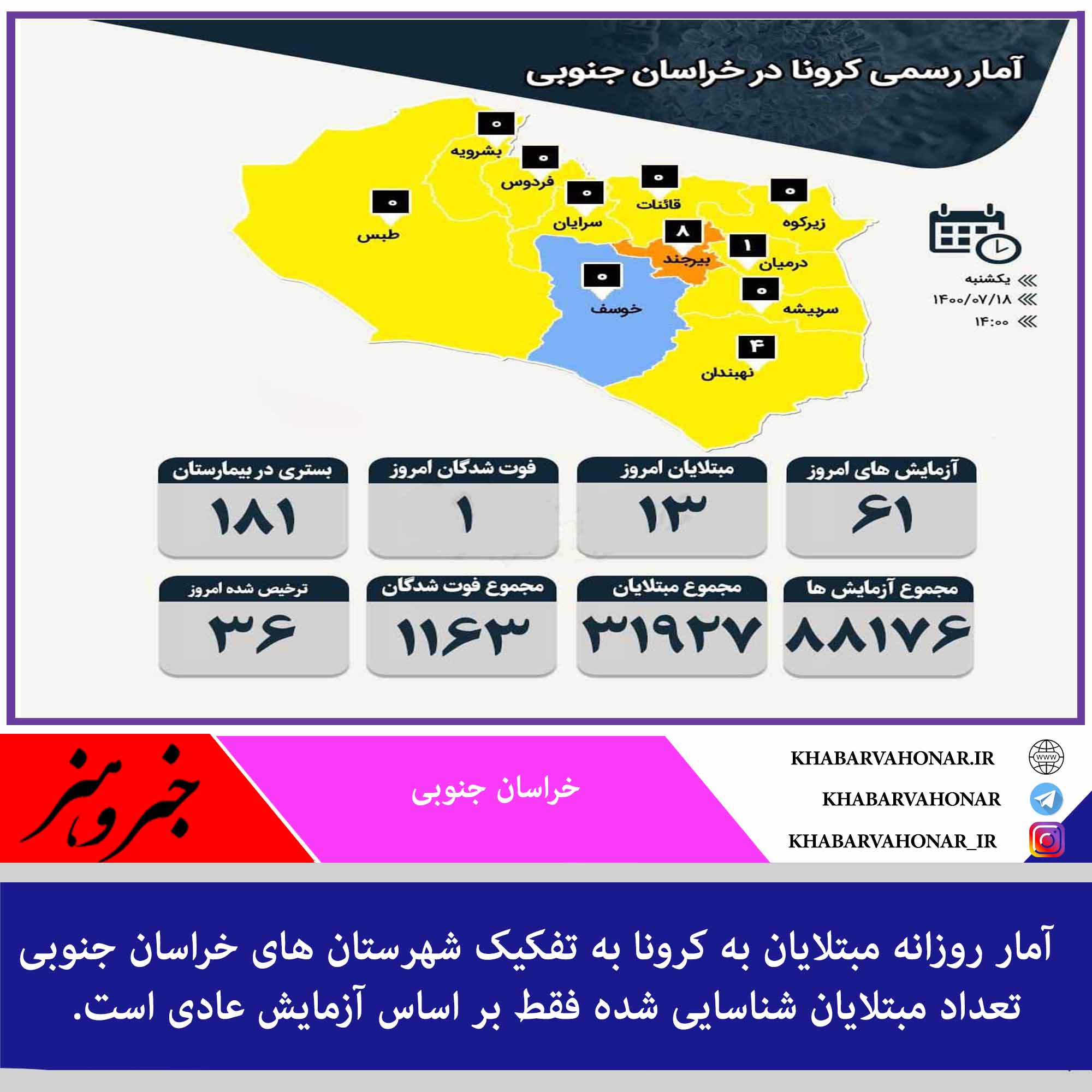 #آمار_روزانه مبتلایان به #کرونا به تفکیک شهرستان های #خراسان_جنوبی