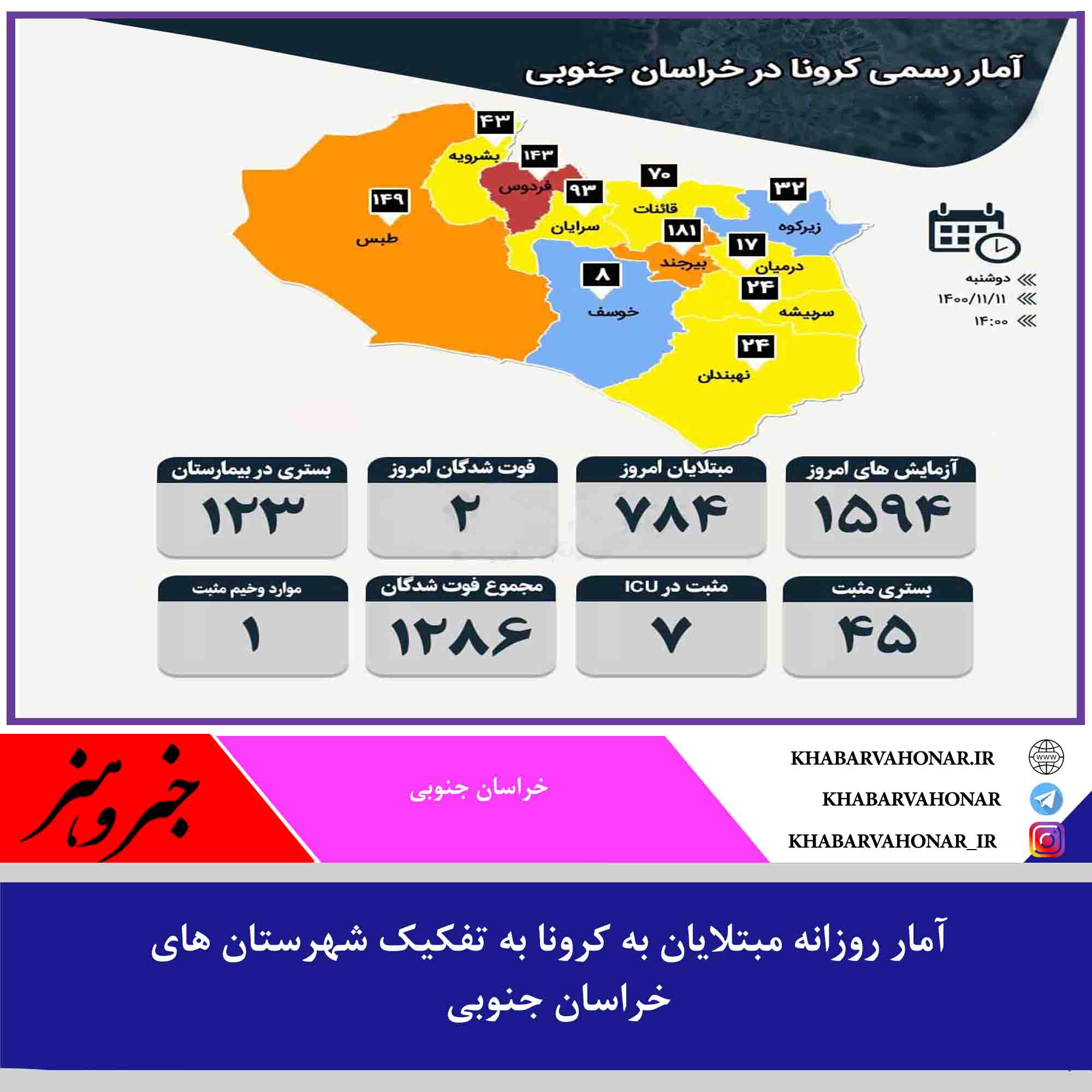 ? #آمار_روزانه مبتلایان به #کرونا به تفکیک شهرستان های #خراسان_جنوبی