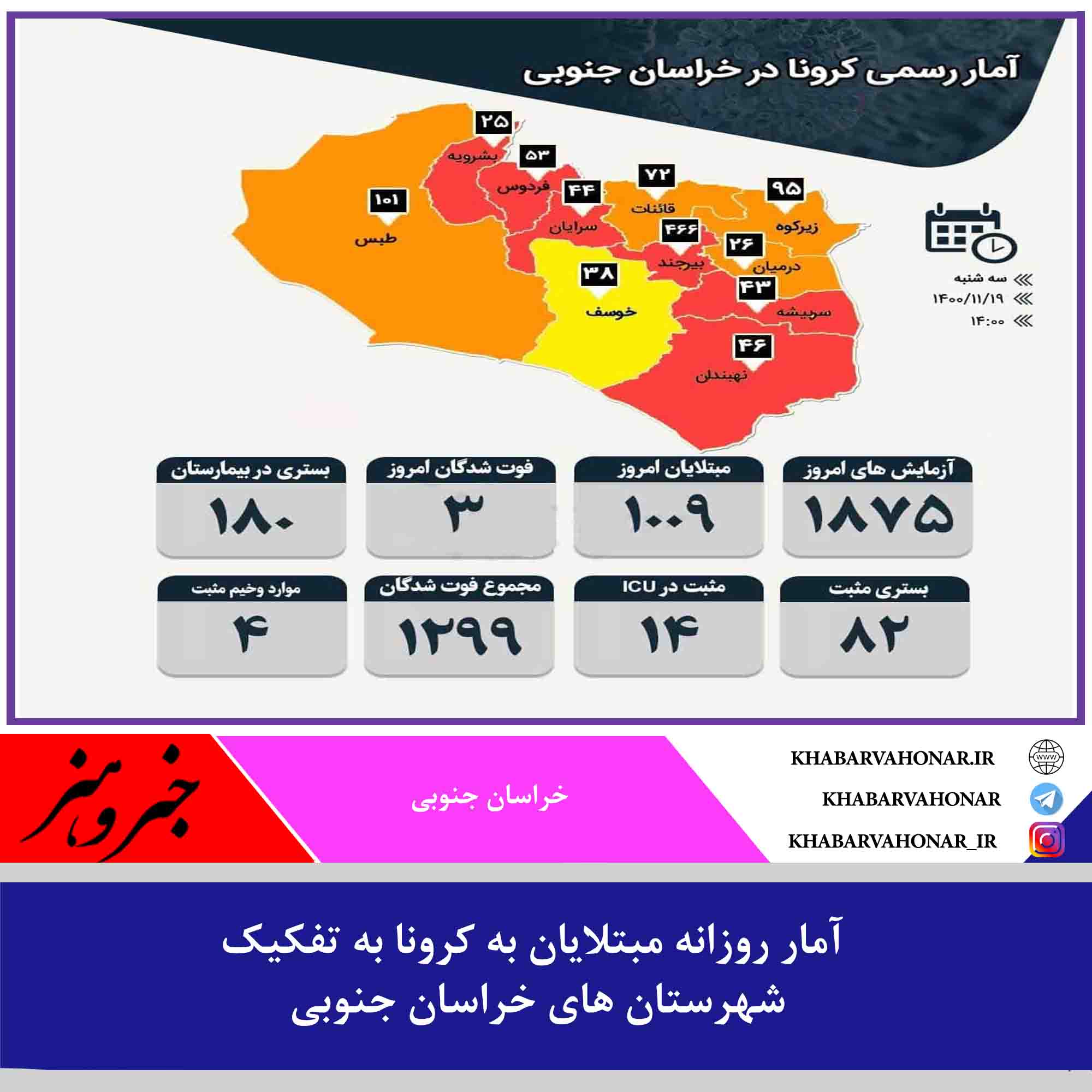 آمار روزانه مبتلایان به کرونا به تفکیک شهرستان های خراسان جنوبی