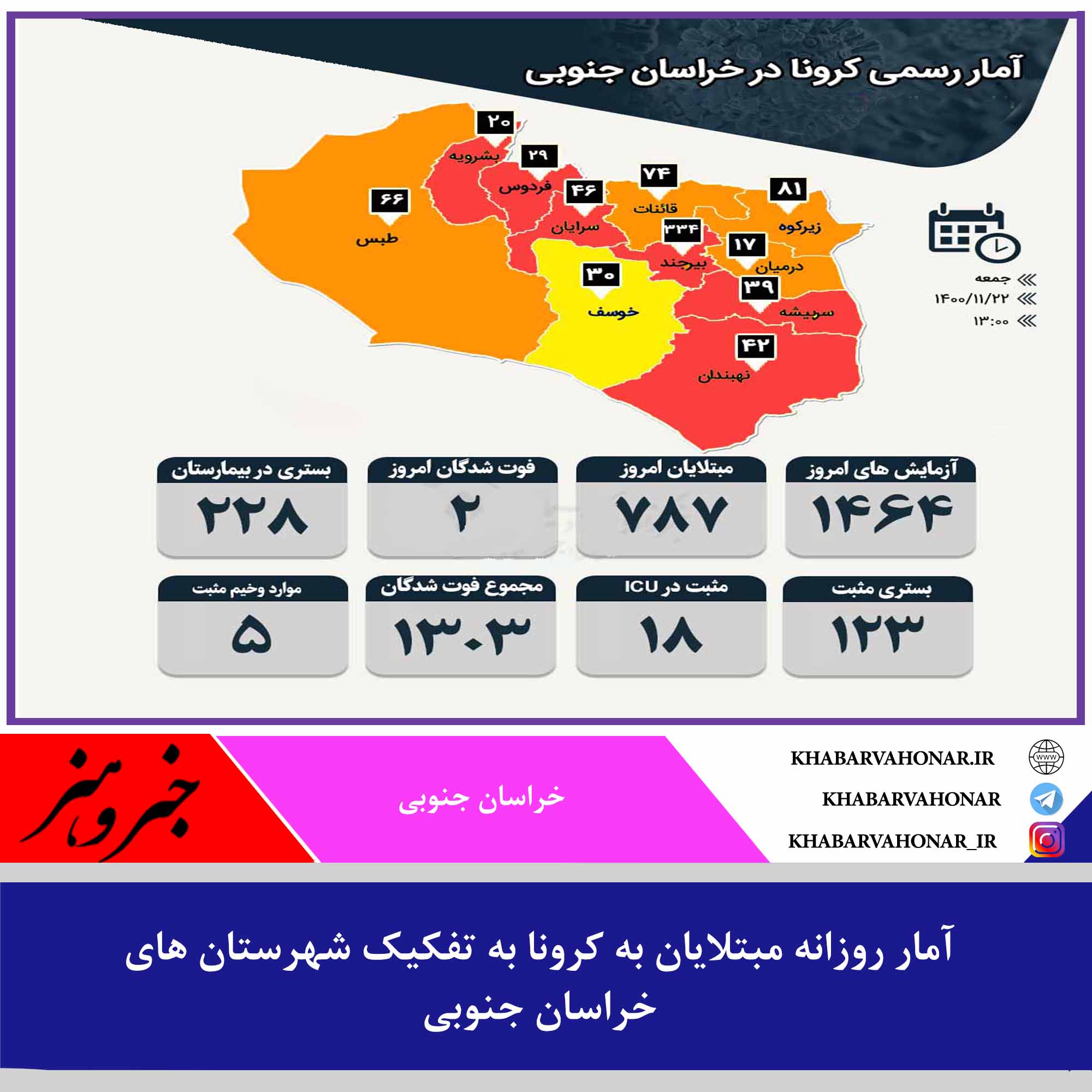 #آمار_روزانه مبتلایان به #کرونا به تفکیک شهرستان های #خراسان_جنوبی