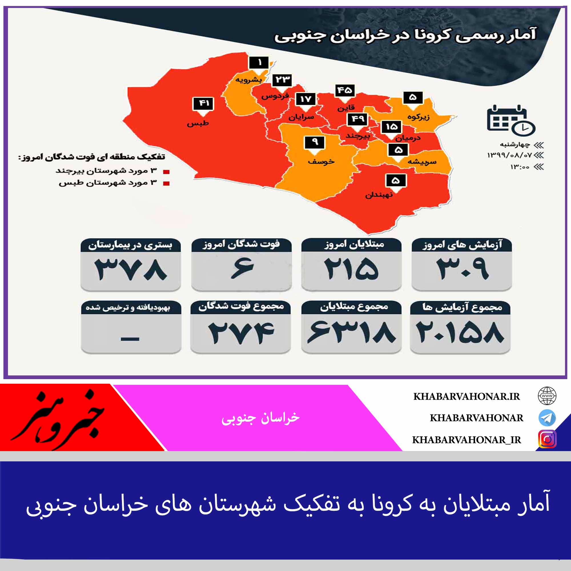 آمار مبتلایان به کرونا به تفکیک شهرستان های خراسان جنوبی