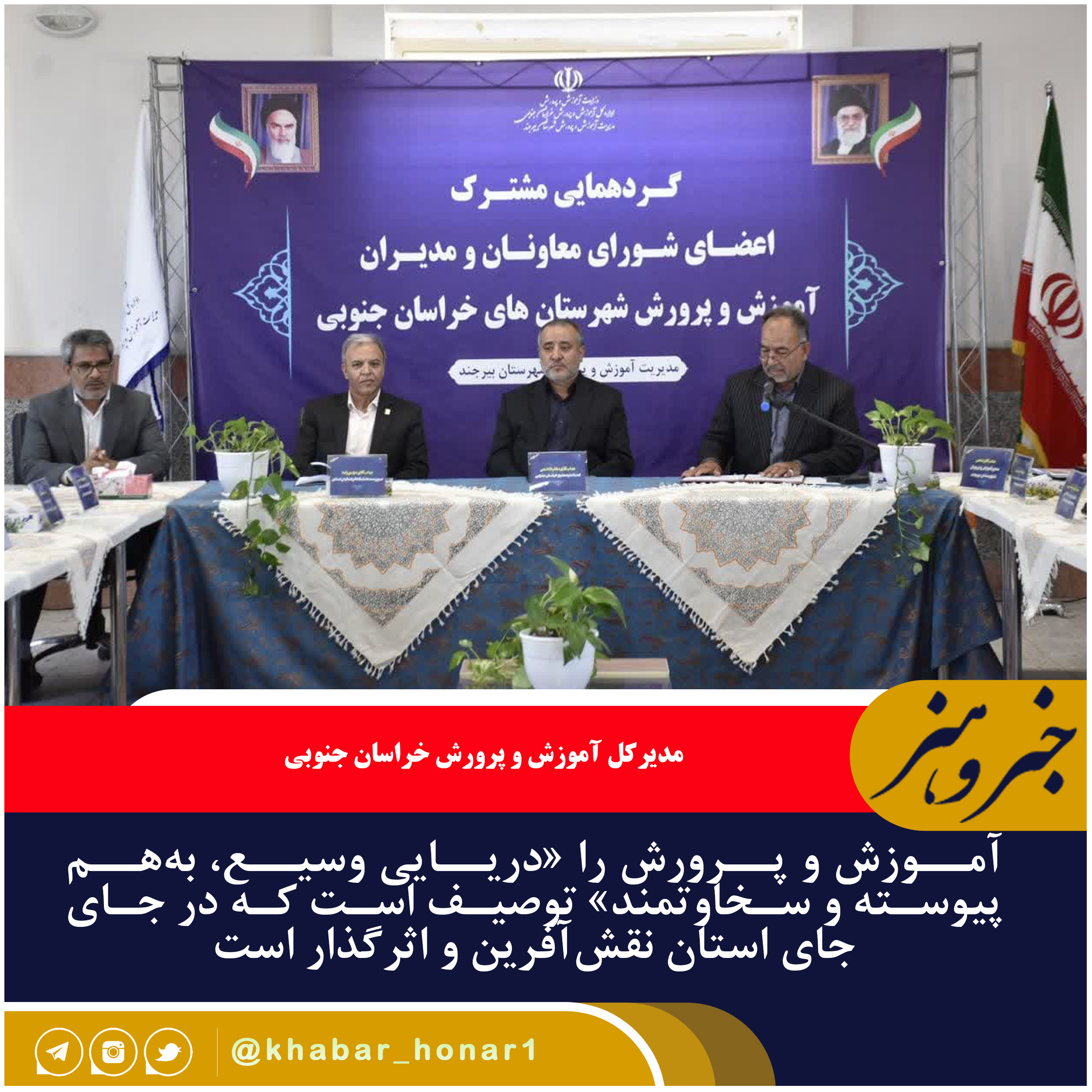 مهدی مرتضوی، مدیرکل آموزش و پرورش استان در گردهمایی مدیران آموزش و پرورش شهرستانها که با حضور استاندار خراسان جنوبی برگزار شد، با اشاره به اهمیت و گستره فعالیتهای نظام تعلیم و تربیت، آموزش و پرورش را «دریایی وسیع، بههمپیوسته و سخاوتمند» توصیف کرد که در جایجای استان نقشآفرین و اثرگذار است.