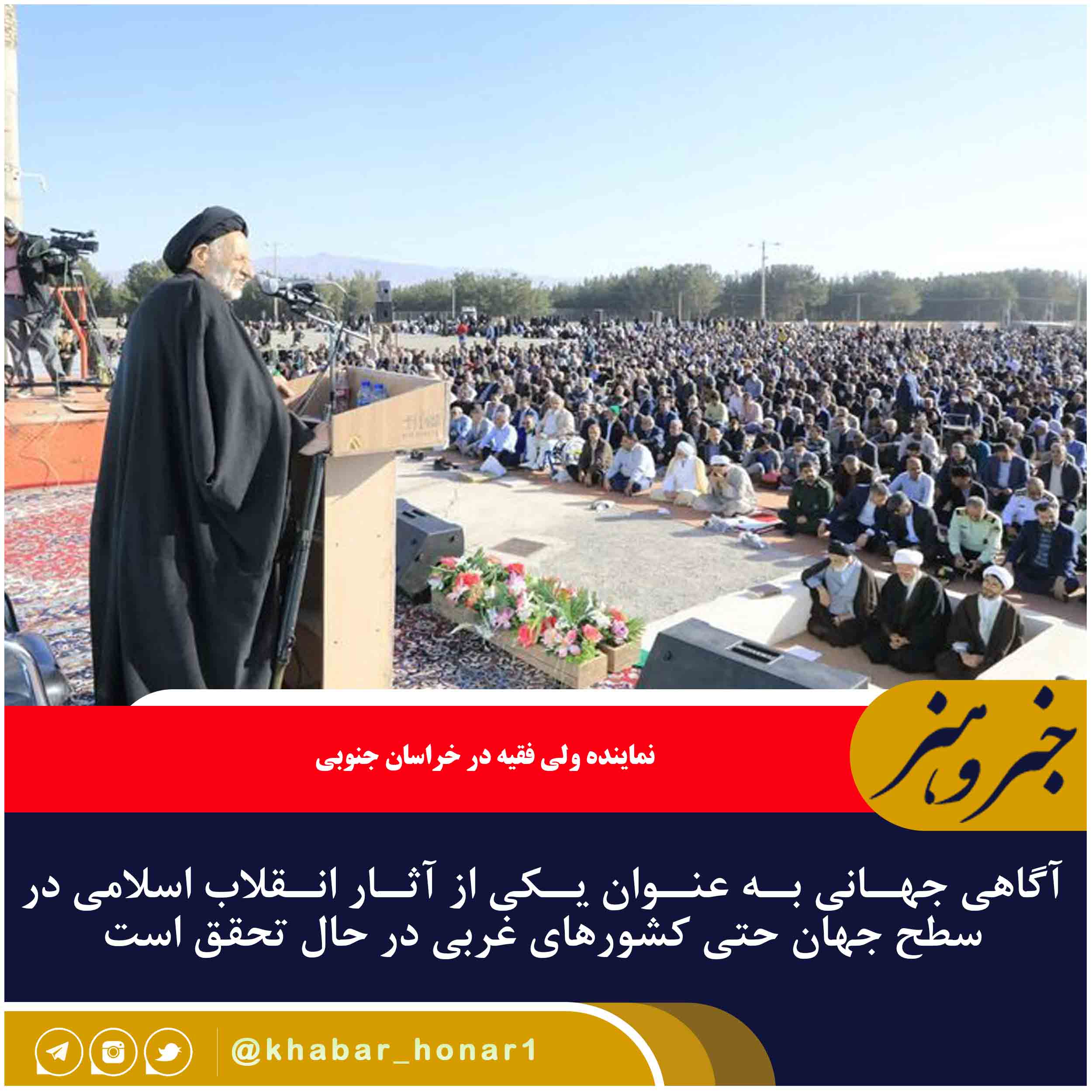 نماینده ولی فقیه در خراسان جنوبی و امام جمعه بیرجند گفت: آگاهی جهانی به عنوان یکی از آثار انقلاب اسلامی در سطح جهان حتی کشورهای غربی در حال تحقق است.