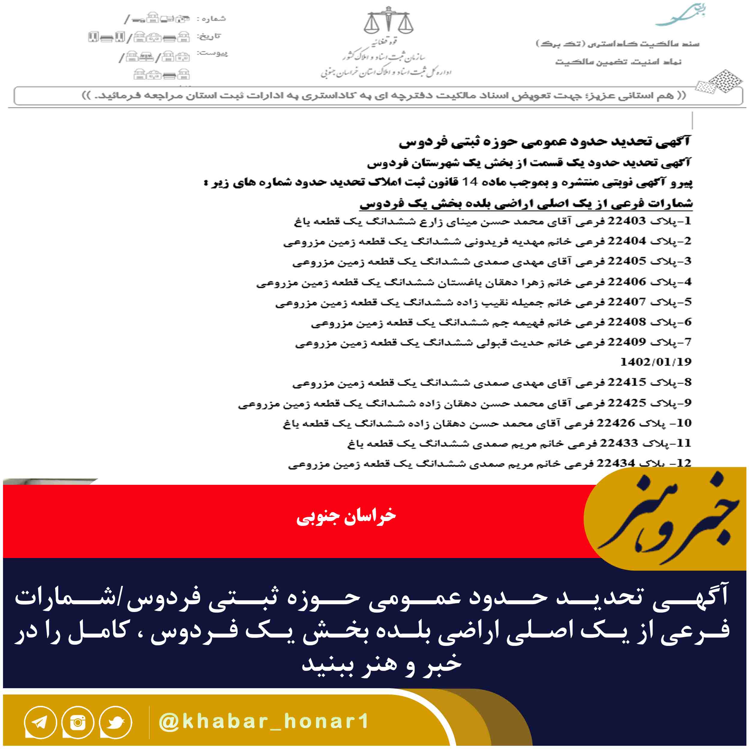 آگهی تحدید حدود عمومی حوزه ثبتی فردوس