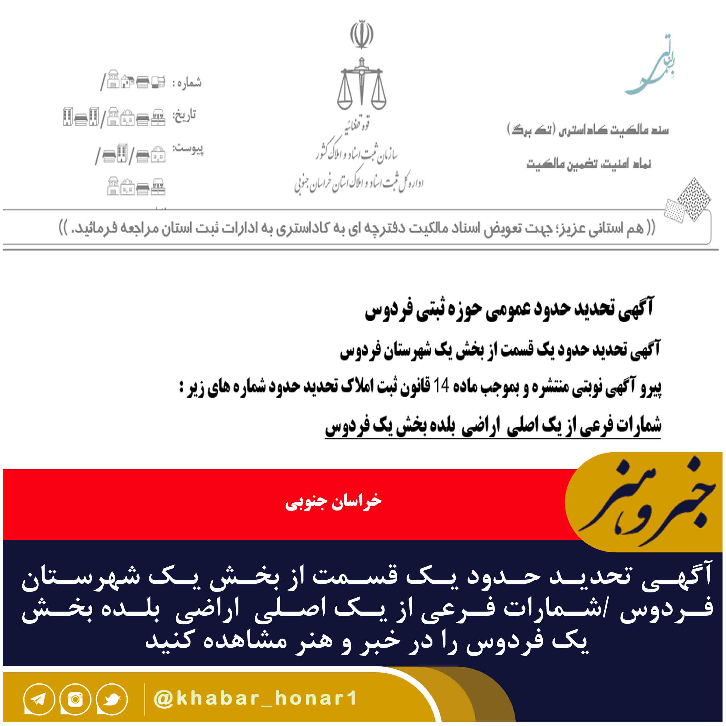 آگهی تحدید حدود عمومی حوزه ثبتی فردوس