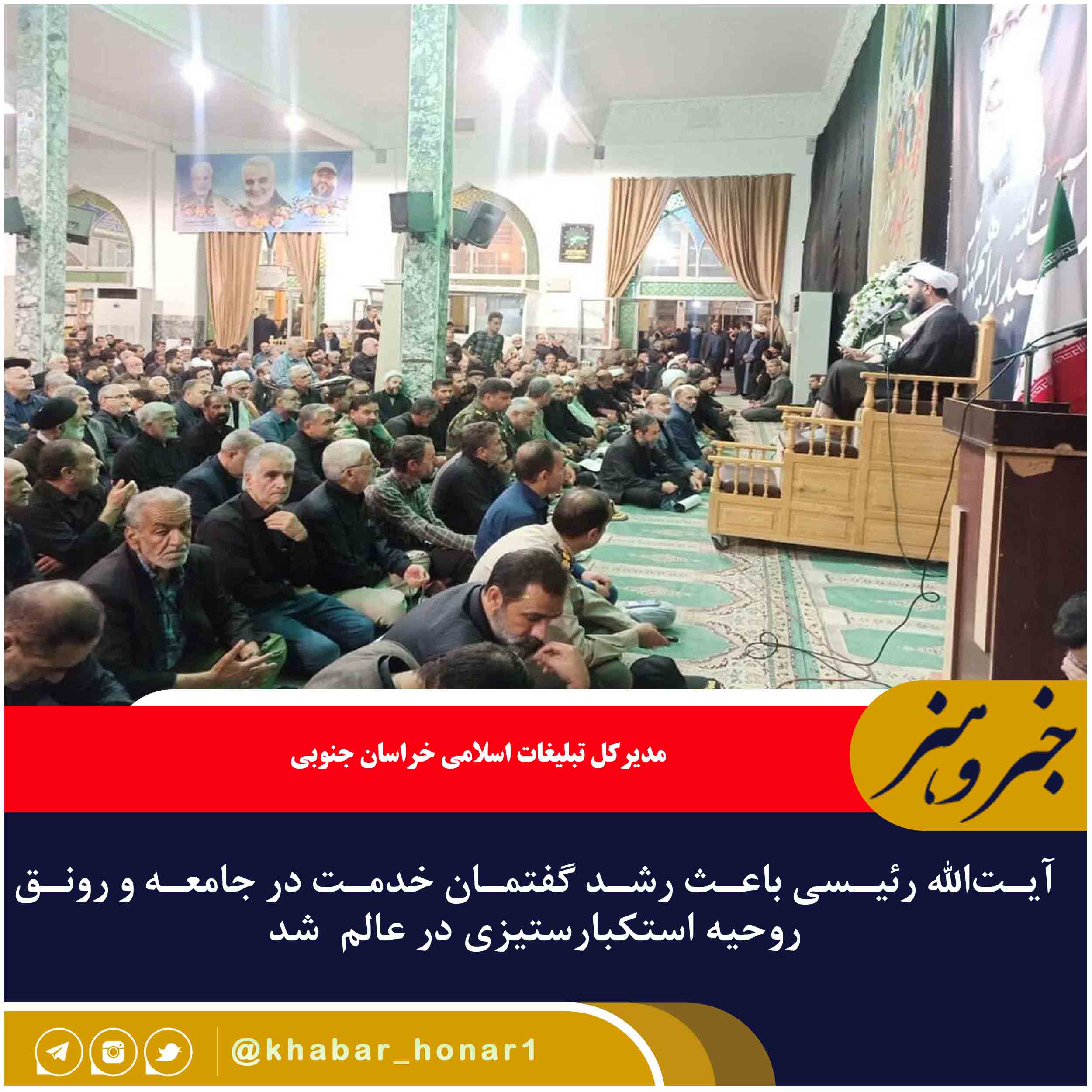 مدیرکل تبلیغات اسلامی خراسان جنوبی با بیان اینکه آیتالله رئیسی در حوزههای مدیریت و خدمت باعث رشد گفتمان خدمت در جامعه شد، گفت: مدیریت او باعث رونق روحیه استکبارستیزی در عالم و وجودش مایه همدلی، انسجام و اخوت جمعی جبهه مومنان و جبهه مقاومت شد.