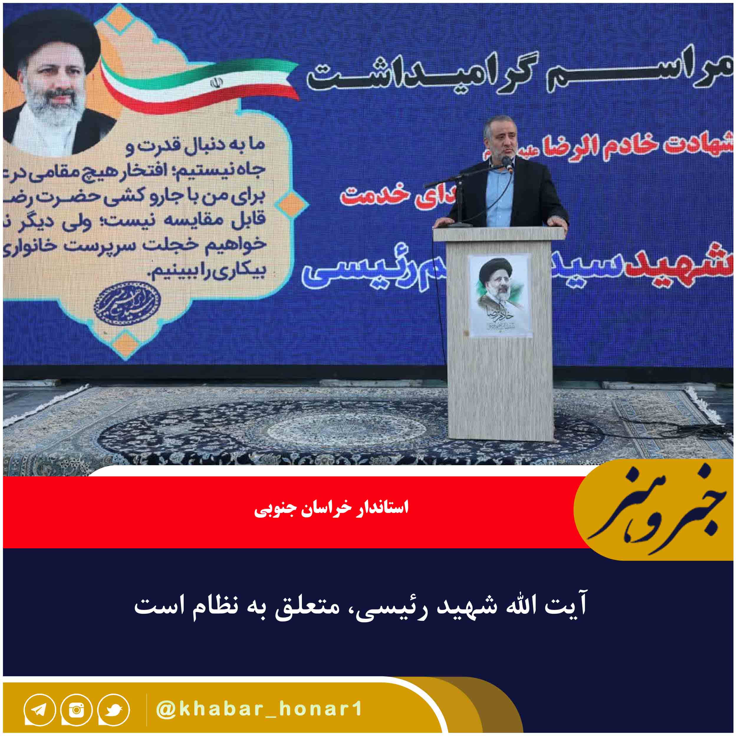 استاندار خراسان جنوبی با اشاره به بیانات روز گذشته مقام معظم رهبری، گفت: آیت الله شهید رئیسی، متعلق به نظام است.