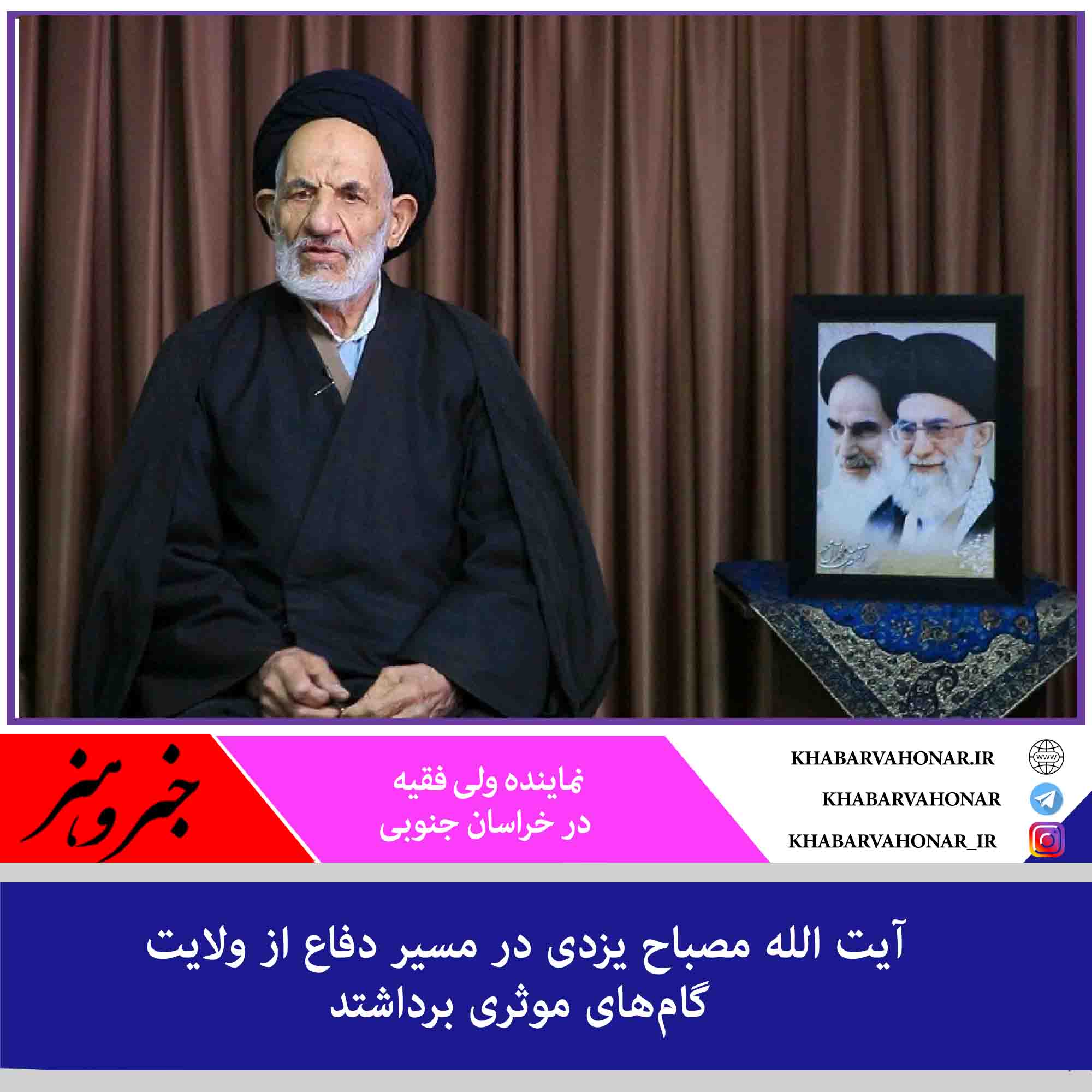 نماینده ولی فقیه در خراسان جنوبی و امام جمعه بیرجند در پیامی درگذشت آیت الله مصباح یزدی را تسلیت گفت و اظهار داشت: این عالم بزرگوار با موضعگیریهای صریح، انقلابی و علمی خویش در جهت تقویت انقلاب و دفاع از ولایت گامهای موثری را برداشت.