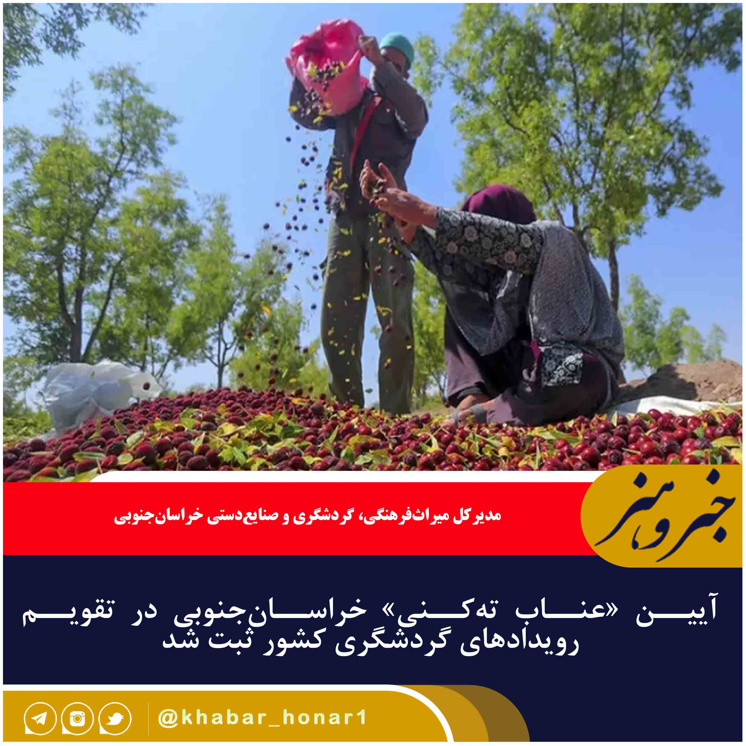 مدیرکل میراثفرهنگی، گردشگری و صنایعدستی خراسانجنوبی از ثبت آیین «عناب تهکنی» در تقویم رویدادهای گردشگری کشور خبر داد.