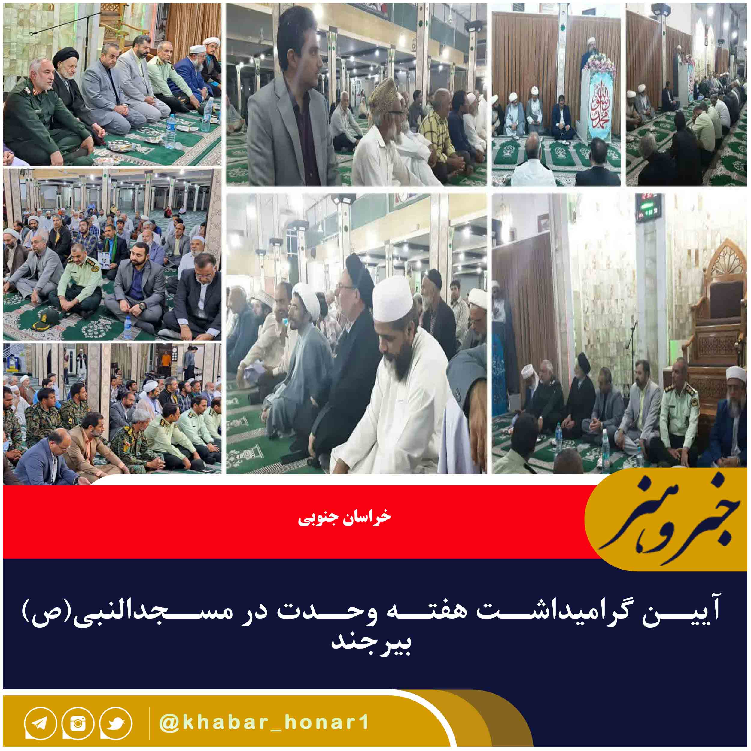 آیین گرامیداشت هفته وحدت در آستانه این هفته در مسجد النبی(ص) بیرجند برگزار شد.