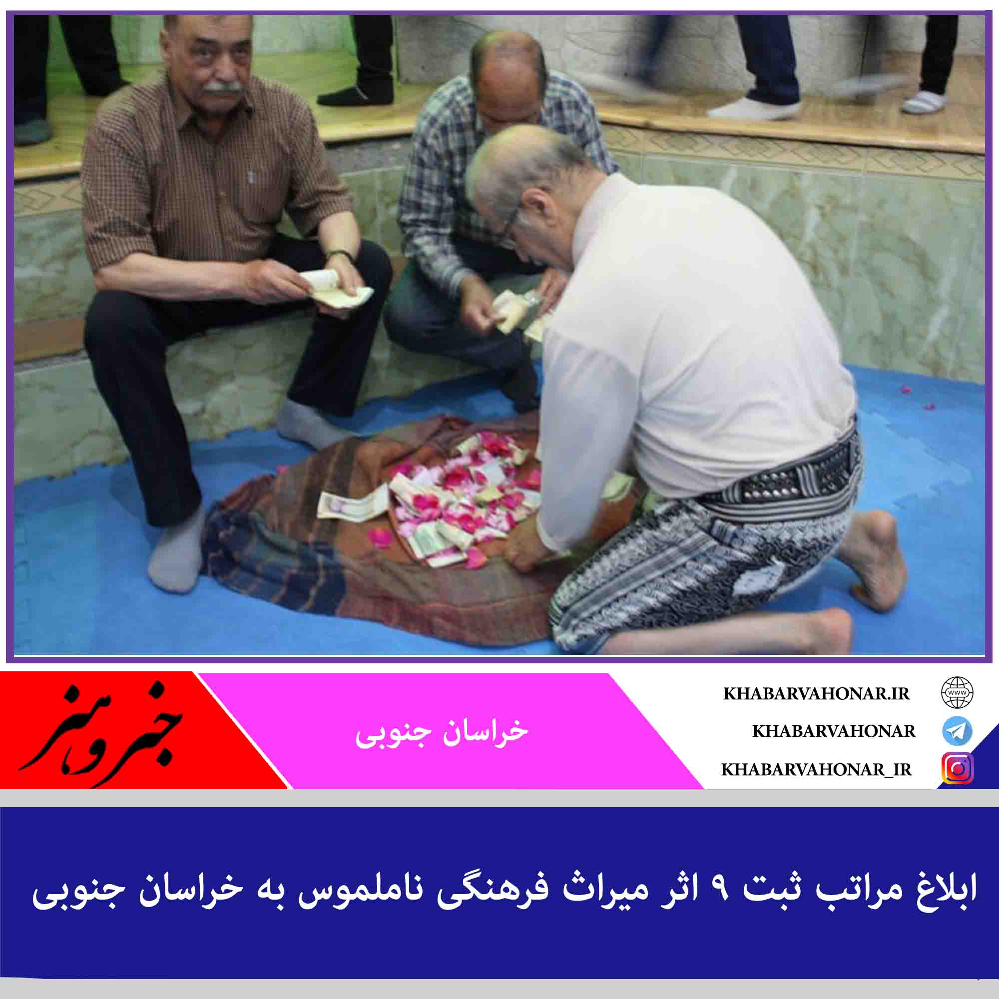 مراتب ثبت ۹ اثر از میراث فرهنگی معنوی (ناملموس) خراسان جنوبی از سوی وزیر میراث فرهنگی، گردشگری و صنایع دستی به خراسان جنوبی ابلاغ شد.