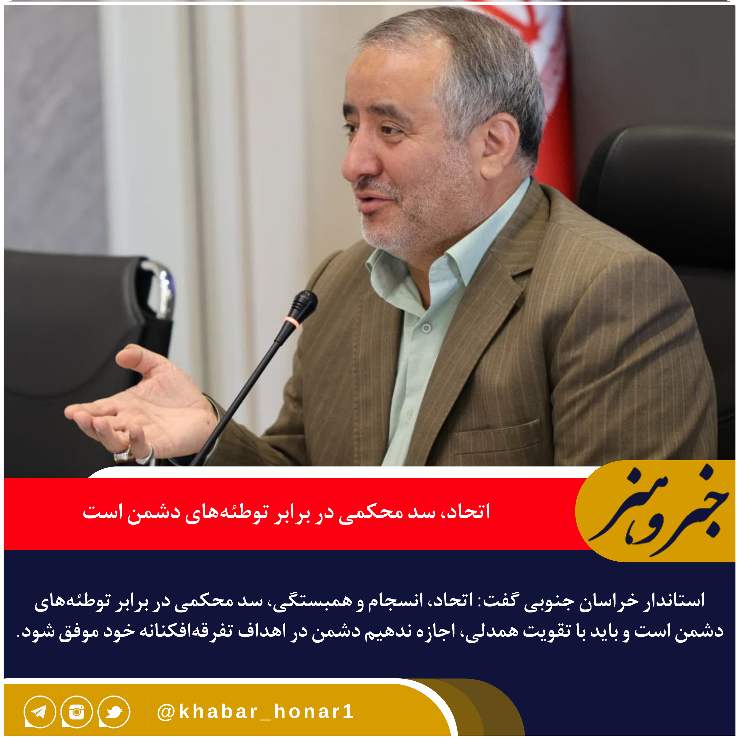 استاندار خراسان جنوبی افزود: امروز بیش از هر زمان دیگری به وحدت، انسجام و تلاش جمعی نیاز داریم؛ اتحاد مردم و مسئولان، رمز عبور از چالش‌ها و تحقق آینده‌ای روشن برای استان است.