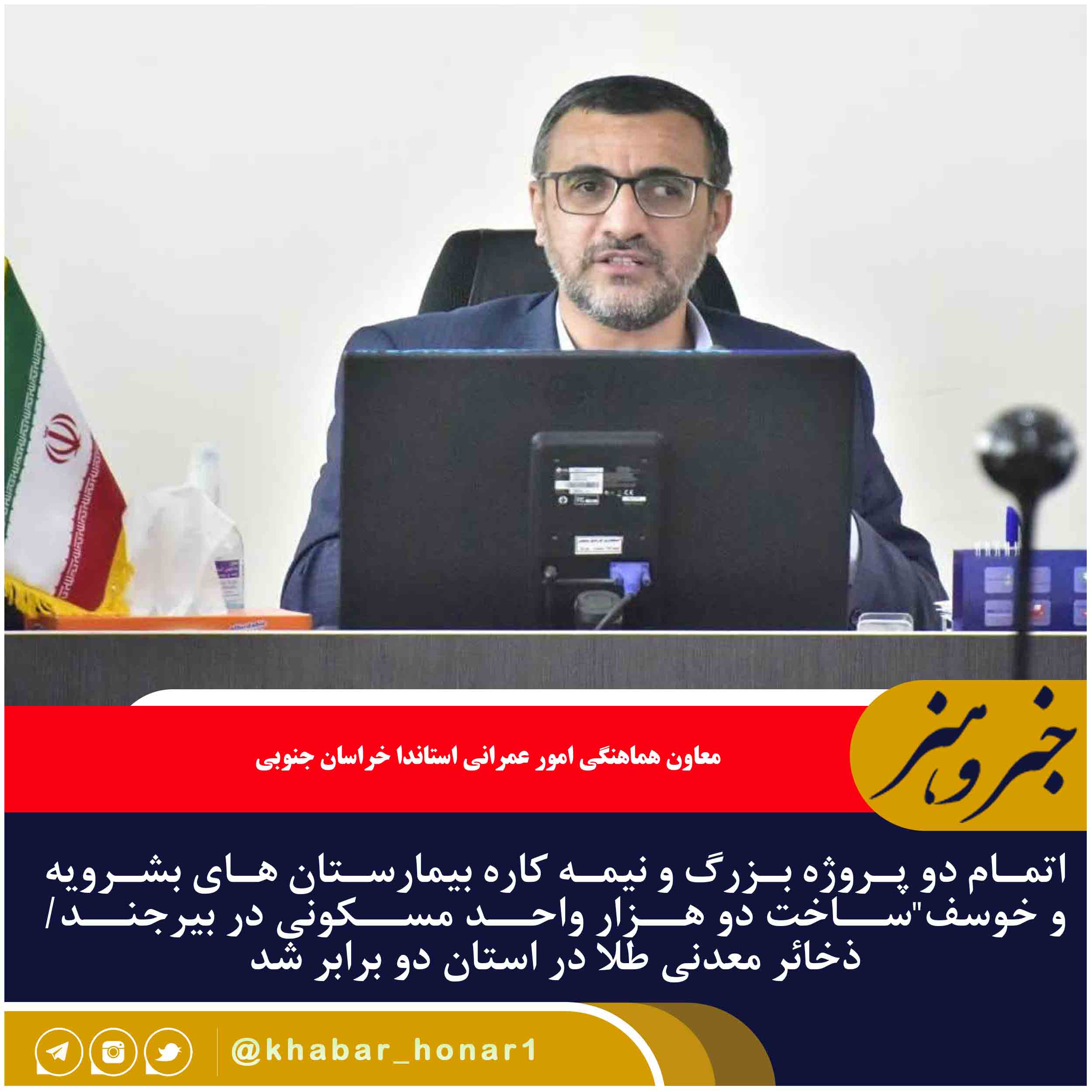 درمان در خراسان جنوبی اشاره و اظهار داشت: اتمام دو پروژه بزرگ و نیمه کاره بیمارستان های بشرویه و خوسف و همچنین