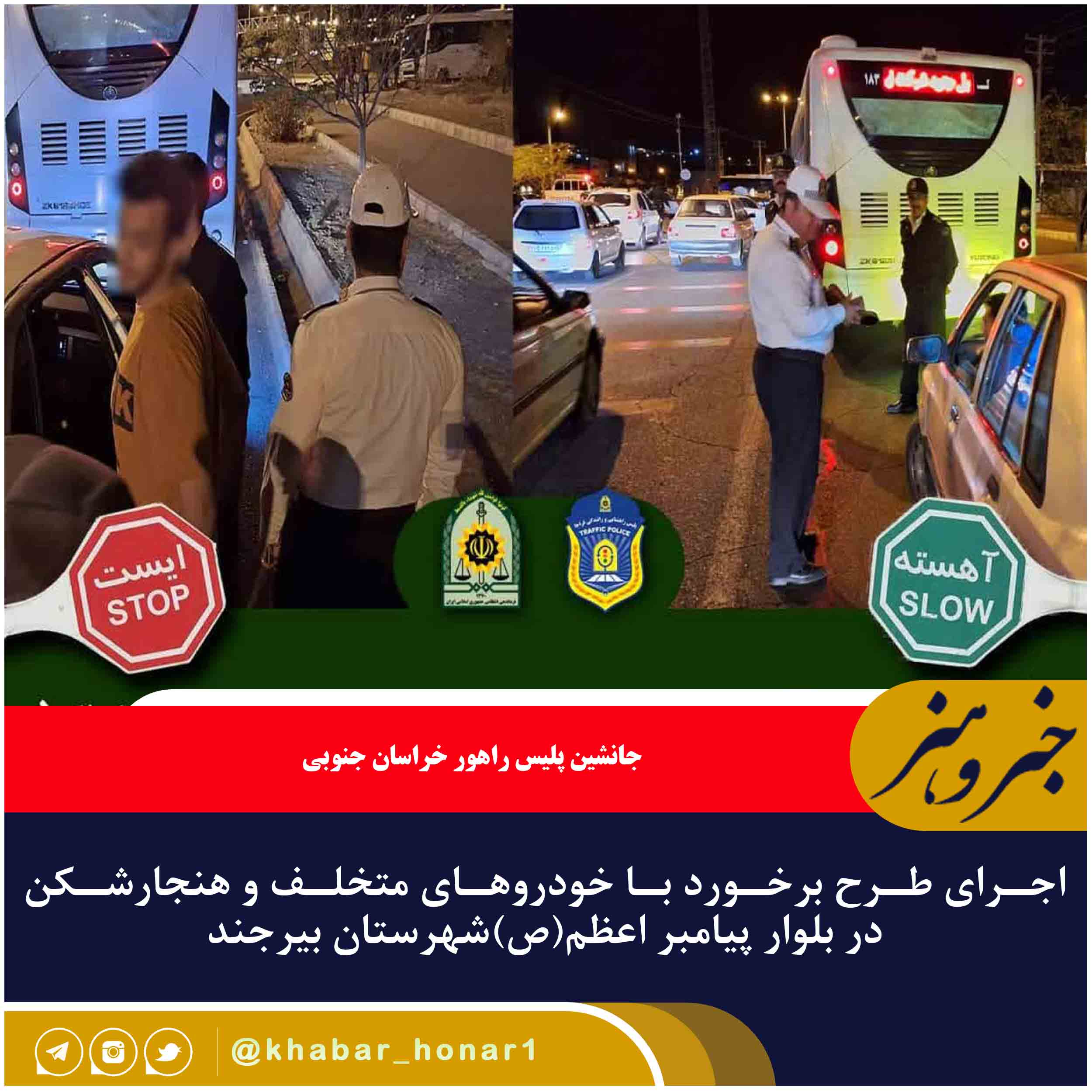 سرهنگ”محمدرضا خسروی” اظهار داشت: در پی مطالبات و درخواست های مکرر مردمی، طرح برخورد با مزاحمت های خیابانی توسط تعدادی از رانندگان متخلف و هنجارشکن در بلوار پیامبر اعظم(ص) که باعث سلب آسایش و امنیت شهروندان می شدند توسط پلیس راهور با همکاری یگان های انتظامی در شهرستان بیرجند اجرایی گردید.