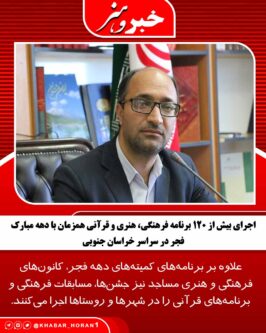 اجرای بیش از ۱۲۰ برنامه فرهنگی، هنری و قرآنی همزمان با دهه مبارک فجر در سراسر خراسان جنوبی