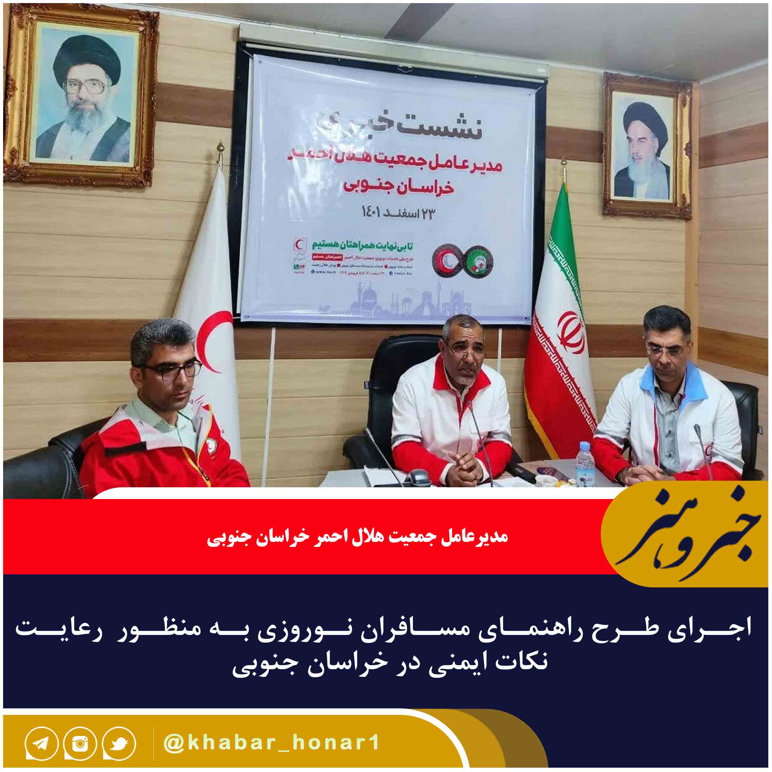 مدیرعامل جمعیت هلال احمر خراسان جنوبی بیان کرد: با تمام امکانات و توان امدادگران و داوطلبان هلال احمر درصدد هستیم که زمینه سفری ایمن و خوش را برای مردم و مسافران فراهم کنیم.