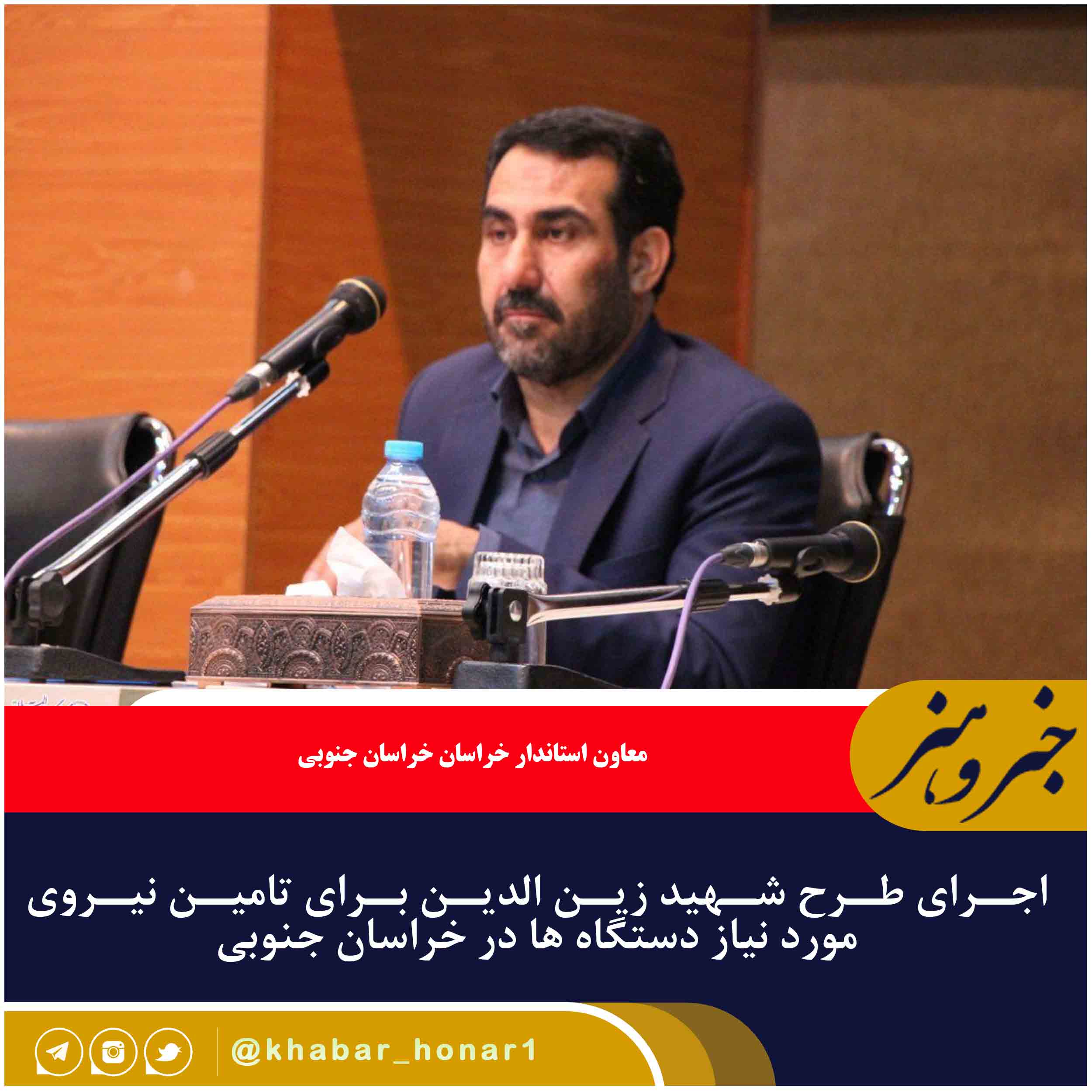 معاون استاندار خراسان خراسان جنوبی گفت: طرح شهید زین الدین با هدف تامین نیروهای مورد نیاز دستگاه های دولتی استان اجرا می شود.