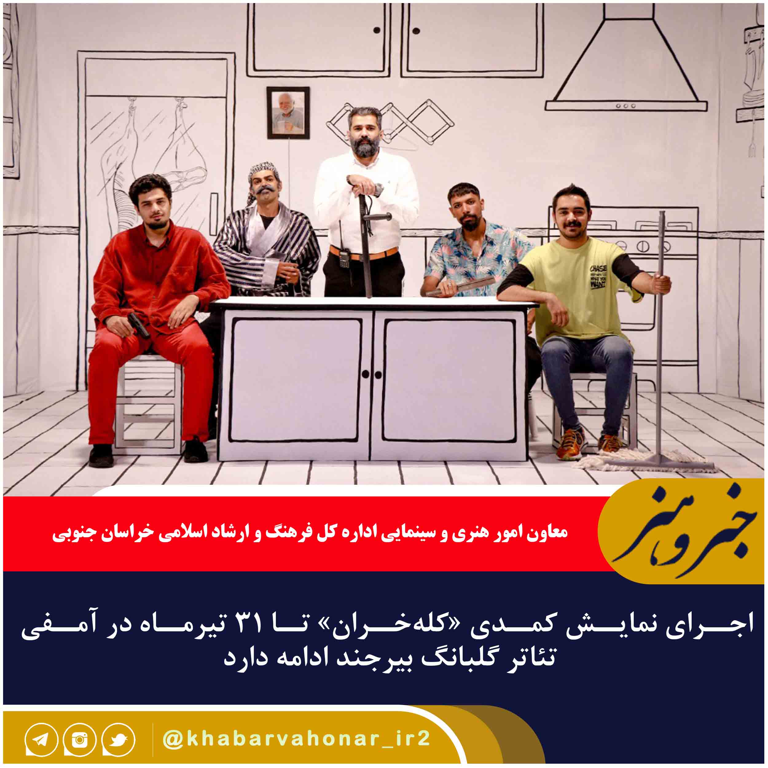 معاون امور هنری و سینمایی اداره کل فرهنگ و ارشاد اسلامی خراسان جنوبی گفت: نمایش کمدی «کلهخران» به نویسندگی امیرحسین شرکت و سید محمدحسین خراشادی زاده تا ۳۱ تیرماه در آمفیتئاتر گلبانگ بیرجند به روی صحنه خواهد رفت.