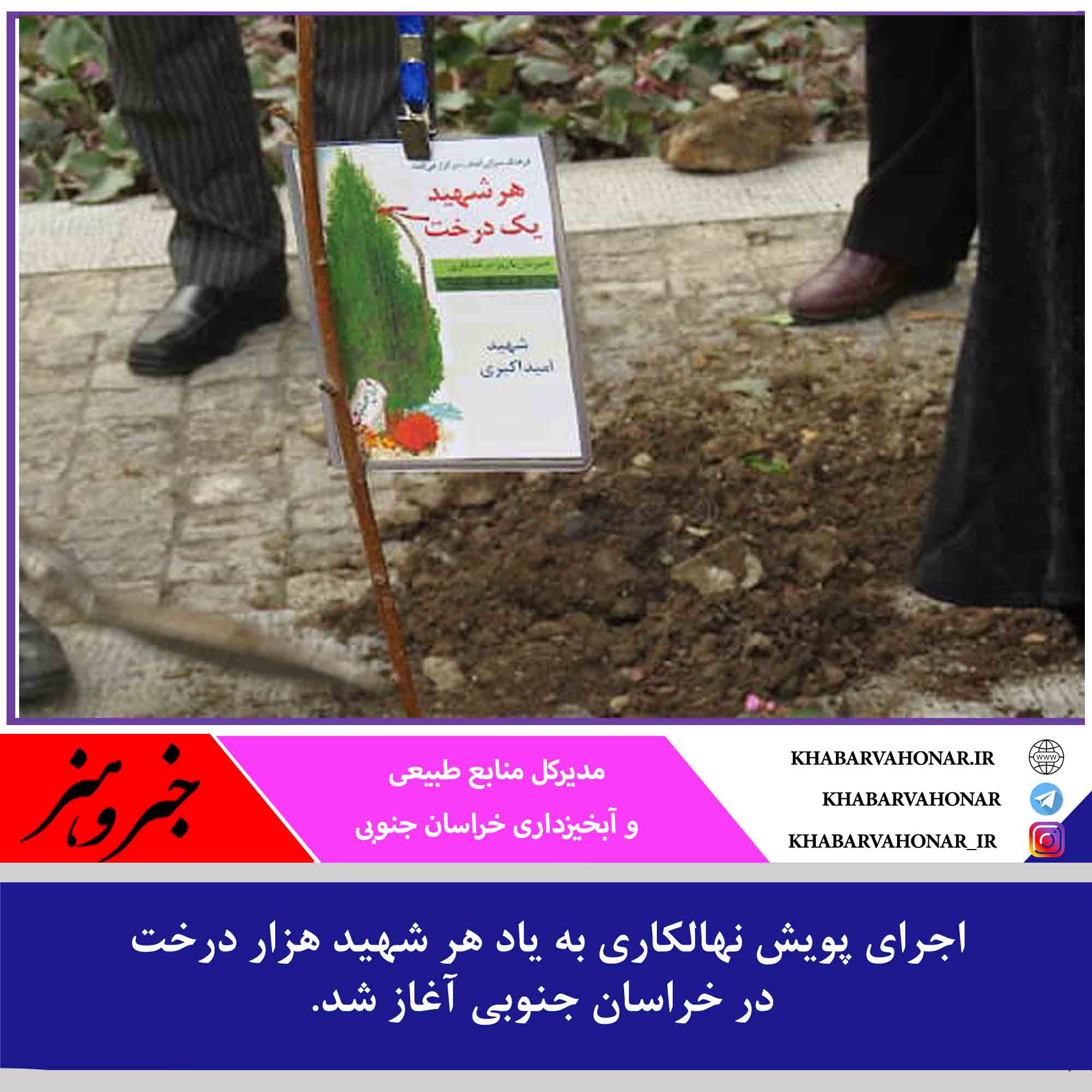 مدیرکل منابع طبیعی و آبخیزداری خراسان جنوبی گفت: با آغاز پویش نهالکاری امسال به یاد هر شهید یک هزار درخت در استان کاشته میشود.