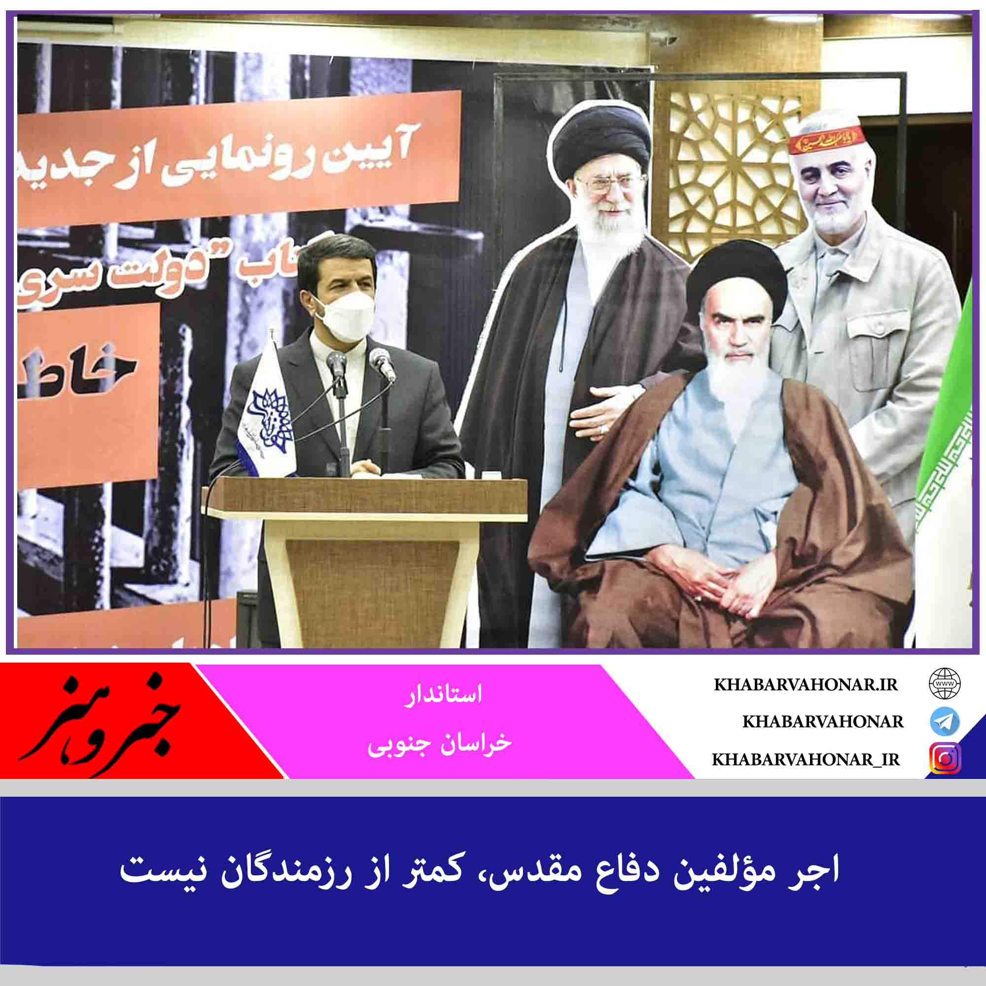حمید ملانوری در مراسم رونمایی از تولیدات حوزه هنری خراسان جنوبی افزود: کسانی که امروز در قالب تالیف کتاب و ایجاد فضاهای ماندگار برای بیان واقعیتهای دفاع مقدس اقدام میکنند، اجری کمتر از رزمندگان ندارند.